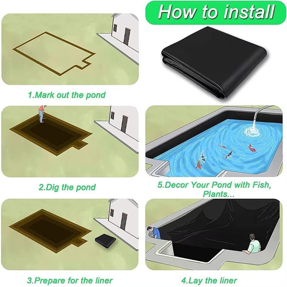 Do you want to have a pleasant and neat garden?Are you still worried that your pond cannot be cleaned regularly?Pool covers, large fish ponds, swimming pools, landscape reinforcement membranes are good companions for your garden. The basin liner is made of high quality HDPE material, high density, thickness 0.3mm. Durable and won't break. Very safe for fish and plants and other forms of aquatic life. Suitable for garden ponds, streams, fish ponds, koi ponds, garden waterfalls. It can also be used in aquaculture, roof leak prevention, building paving, etc.Product Name: Pond LinerMaterial: HDPE (High Density Polyethylene)Thickness: 0.3mmSize: you have the choice between several sizesPackage Content: Basin Liner X1.measurement calculation;Circle: (diameter of lower circle + height) X2Square: (low width + height) X2 = film width, lengthRectangle: (bottom width + 2X height) = film width(low length + 2X height) = film lengthRemark :1. Please be careful of sharp objects when using. Remove sharp or very sharp objects.2. Due to manual measurement, the product may have an error of 1-3cm, please refer to the actual situation.3. Please measure the required size when purchasing, so as not to buy by mistake and affect your normal use.4. The general logistics delivery time is 25-30 days.