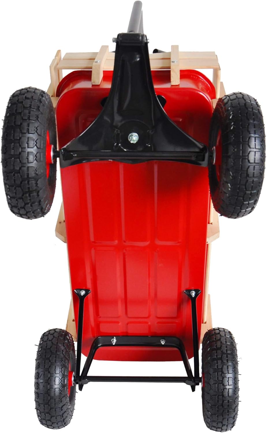 This big foot panel wagon has an all-steel construction, rugged air tires and wooden stake sides, which is great for your kids or grandkids to play with. The wagon can haul gardening tools or supplies in the yard! It has a large loading capacity of 330 lbs. The extra-long handle is foldable under for easy storage. The wooden panels in the side are removable. Brand new and high quality Sturdy all steel wagon bed Removable wooden side panels 10" ball bearing wheels with pneumatic tires Extra-long handle folds under for easy storage Air tires can handle any terrain Specifications: Color: as the picture show Material: Steel + wood Overall dimensions: please see the picture Size of the wheel:please see the picture Weight capacity: 280 lbs.
