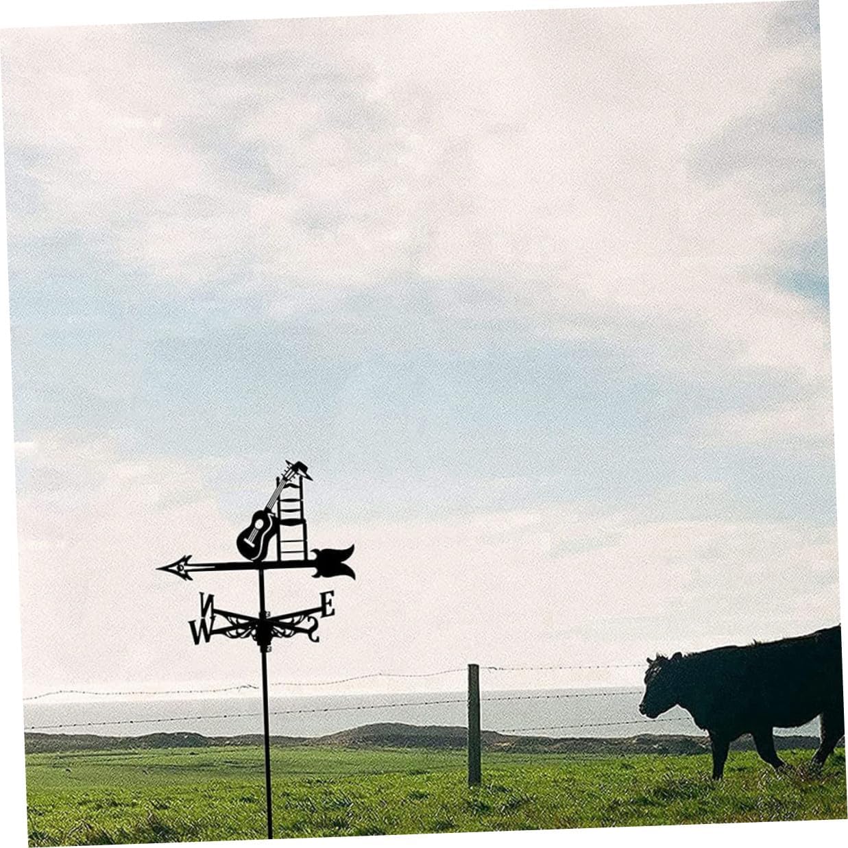 Package Include 1 Vane Features -Product Info:Guitar weather vane -Color:Black -Material:Iron -Size:54.00X34.00X1.00cm/21.22X13.36X0.39in -A weather vane of this size is perfect for your house, garage, cupola, barn or pavilion. -Owning the strong wear and break resistance ability, very durable and stable to use outdoor weathervane. -Mounted on wooden stakes or walls, easy to assemble and disassemble, iron structure, strong and durable, rotate with the wind roof decoration. -This size of weathervane is good for any garden, deck, or yard, useful and practical. -The delicate weathervane as a gift for a flying enthusiast and it was a hit. Metal VaneGoods Descriptionoutdoor weathervane The weather vane is designed for direction and decoration.wind direction indicators Creative shape and design ensure its practicality and popularity.wind direction indicator garden You can also share them your family and friends who need a weather vane to indicate the direction of the wind
