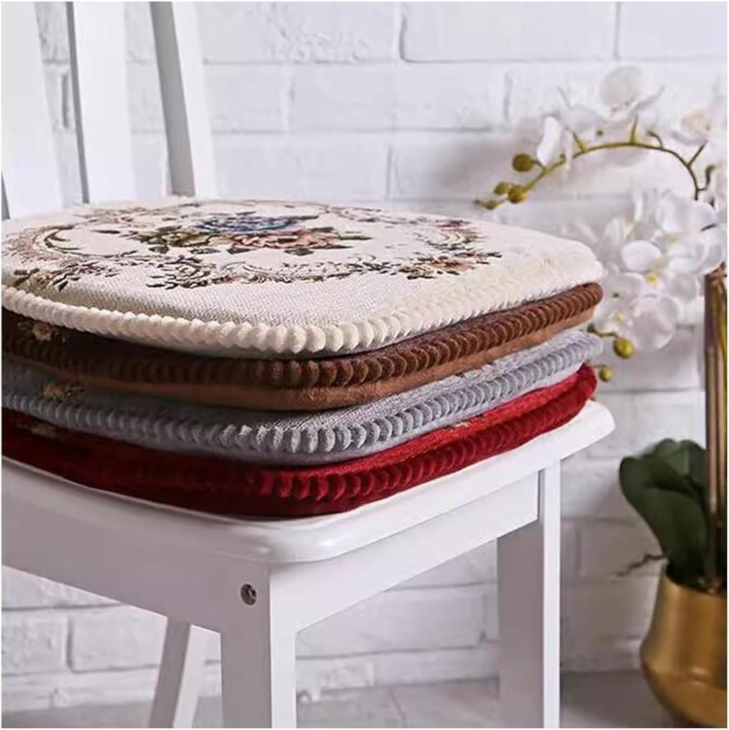 HIGHLIGHTS:1. Colorful and decorative, it will bring you a good mood when you see it. Tie is long enough to fit all most shape of the chairs.2. With removable cover, the cover is detachable with zipper design, makes the seat cushion is easy to be washed and cleaned, your cushion will always keep new.3. Cover adopt quality chenille fleece fabric, breathable and skin-friendly, exquisite jacquard embroidery and environmental natural dyeing processing, very beautiful, machine washable and you will never worry about it fading, it is suitable for all season.4. Filled with high-density sponge, good resilience, not easy to deform, moderate hardness, comfortable sitting feeling.5.With non slip design, this seat cushions for kitchen chairs with two ties, Tie the cushion to the chair's leg or back, cushion will not slide down. Specification:Cover Fabric: Chenille Dimension: 48x45cm/19x18inchColor: Beige, Brown, Gray, Green, Nvy Blue, Red Warm Note:1. Only cushion, chair not included.2.Due to manual measure, please allow a slight measurement deviation of 1-2cm.3. Please kindly note product will arrive in a slightly compressed state; please allow a few days for product to expand to final size listed in description.Our kitchen chair cushions is perfect for your dining room! These colorful and practical dining chair cushions will bring you a beautiful dining time!