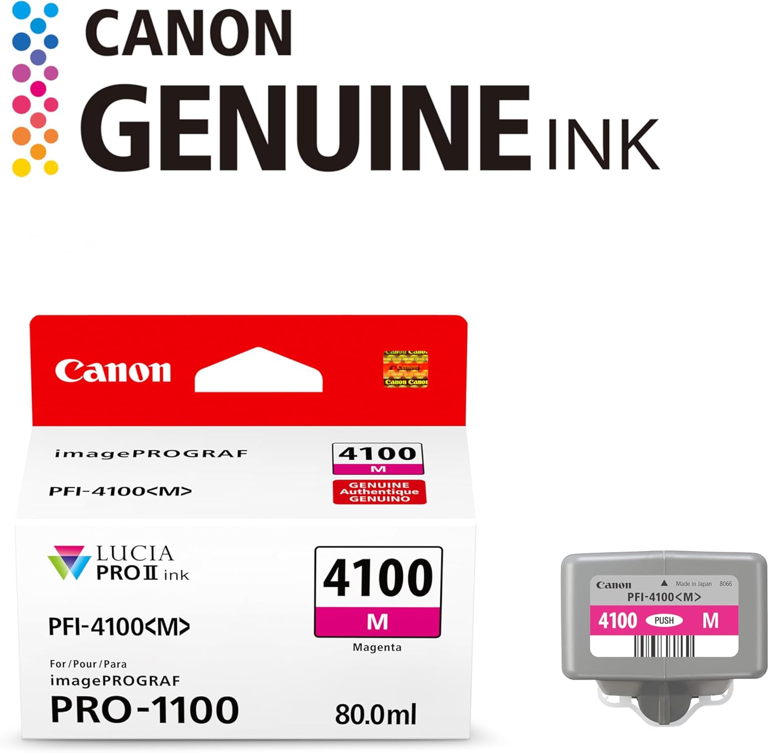 Canon PFI-4100 Genuine Magenta Ink Tank, Compatible with imagePROGRAF PRO-1100 Printers