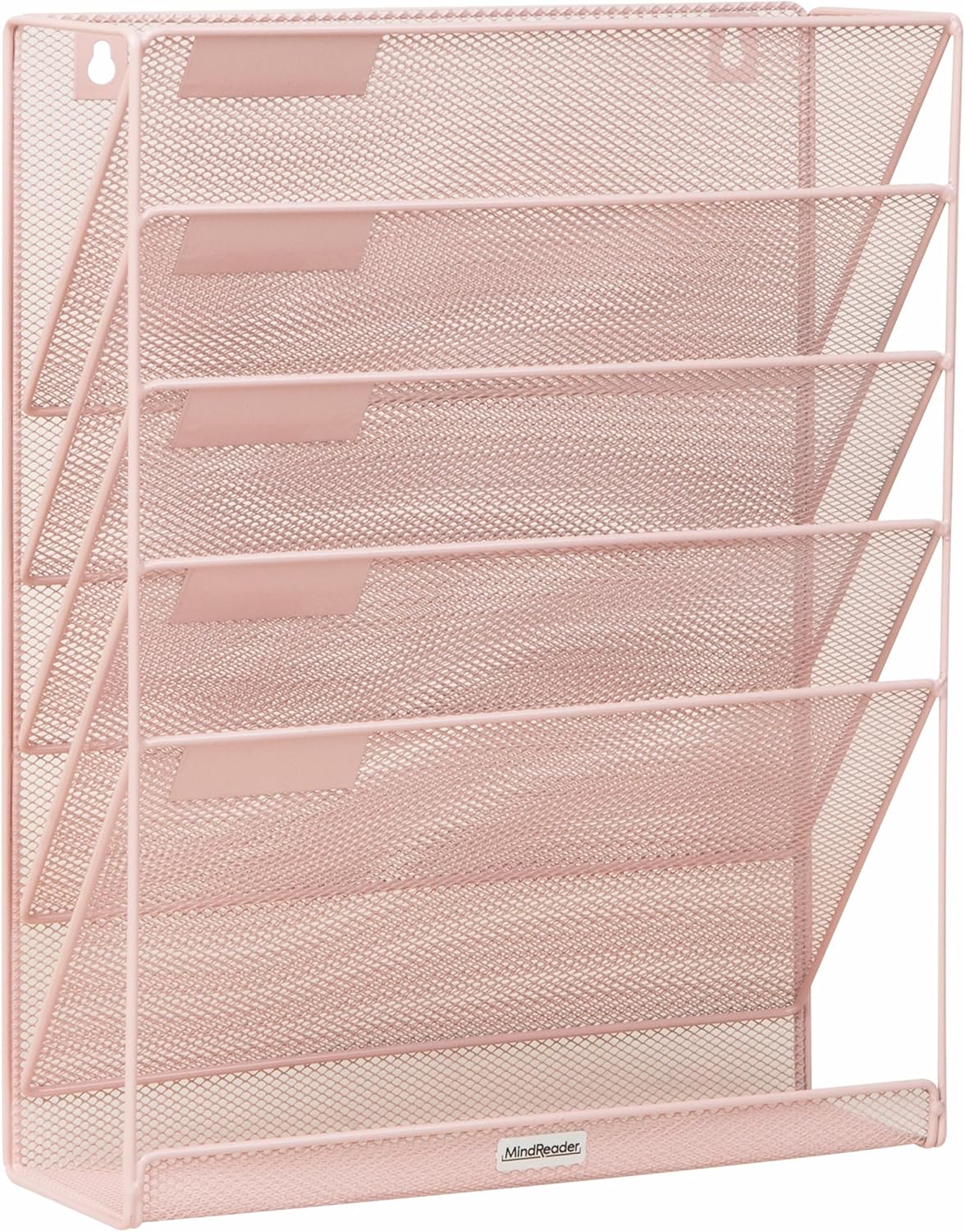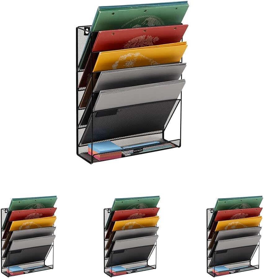 Efficient Workspace with the 5-Tier Vertical File Holder: Where Organization Meets Well-being Having all your essential documents and files properly stored and easily accessible can significantly streamline your workflow. This vertical file holder gives you the ability to categorize and retrieve your important files quickly, boosting productivity and freeing up valuable time. Don't be misled by its lightweight design; our file holder is built to last. Constructed from sturdy metal, it combines durability and stability. From its angled compartments that keep your files in place, to the easy-to-maintain finish that withstands the test of time, every detail of this file holder is designed to last. Installation is a breeze. All you need to mount this storage rack is a screwdriver and level—or a good eye for straight lines—and in no time, you'll have total control over your organizational challenges. This 5-tier organizer makes a fantastic addition to any work area and also serves as a thoughtful gift for graduates venturing into the working world or for anyone who needs to keep track of various papers in one organized place. Welcome to your newfound sense of organization and increased productivity with our 5-tier vertical file holder.