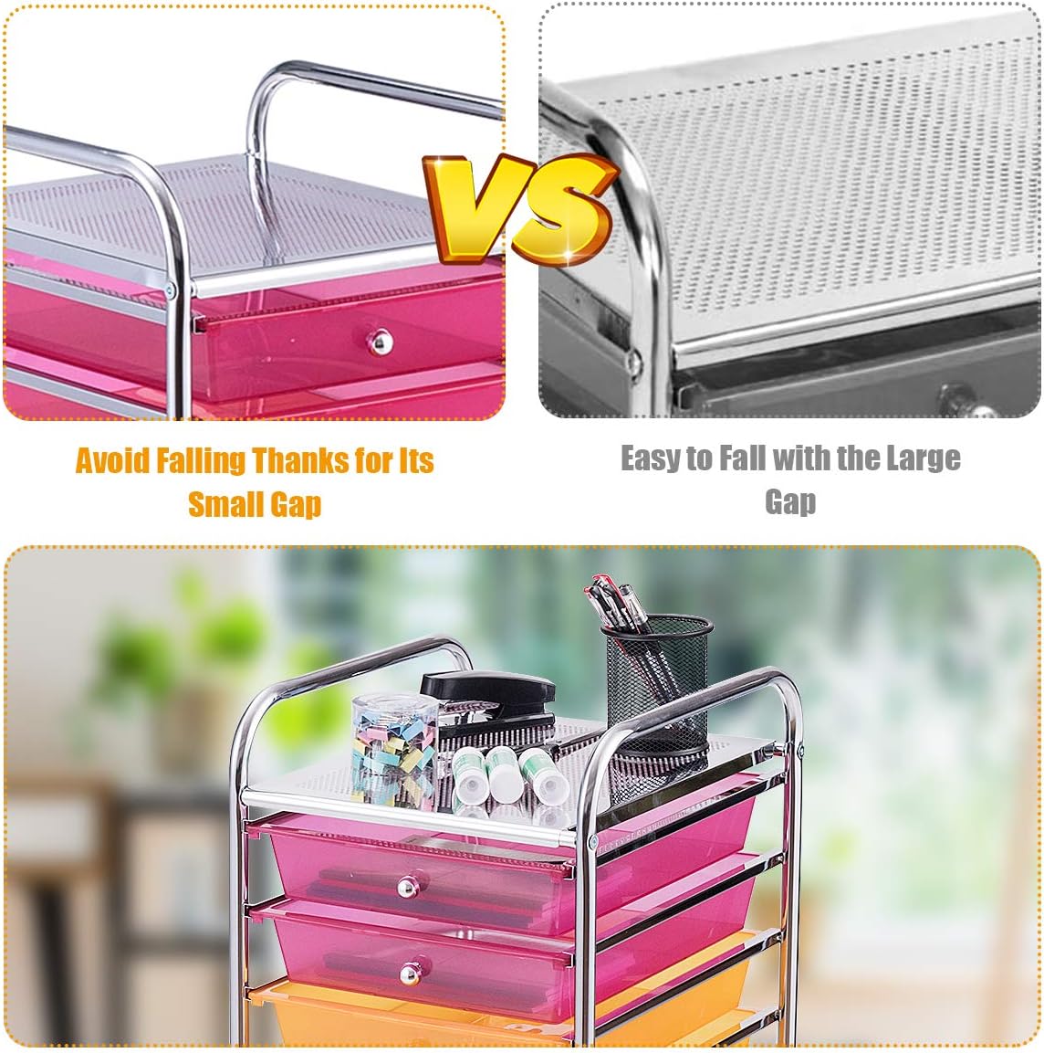 Description: This 10-drawer rolling storage cart features a vertical design that provides ample space for office supplies such as notepads, pens, staples and paper clips, while saving floor space. At the same time, each drawer is equipped with metal knobs for easy pulling. The cart is made of high-strength galvanized iron pipe, which is very durable for long-term use. There are 4 wheels underneath, which makes it easy for you to move it to any place. Better yet, there are multiple colors for you to choose, so you can put it in your office, home, garage or wherever you need to organize it according to your preference and the style of the room. Features: 10 removable drawers for classified storage Metal frame and plastic drawers, sturdy and durable 4 universal wheels (2 with lock) for easy movement and fixation Drawers slide through metal channels with no resistance Drawer with metal knob for easy closing and opening Easy to pull or push the cart with 2 handles on the top Spacious storage space on the top of the cart Ideal drawer storage cart for home, office, garage and school Drawers are easy to clean with a damp cloth Easy to assemble in short time according to instruction Specifications: Color:Black/Clear/Multi-color/Rainbow/Yellow Materials: Steel, PP Dimension of Each Drawer: 14” x 11” x 2.4” (L x W x H) Overall Dimensions: 15” x 13” x 34” (D x W x H) Maximum Weight of Top: 15lbs Maximum Weight of Drawer: 3lbs Package Includes: 1 x 10 Tier Storage Cart 1 x Instruction