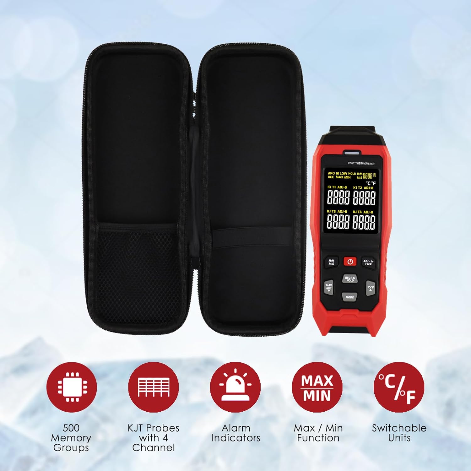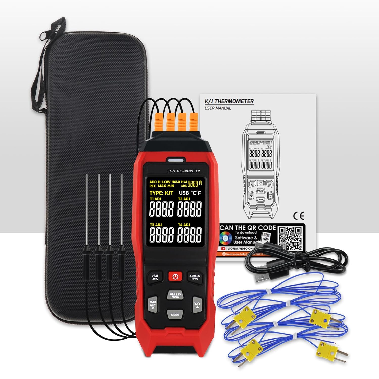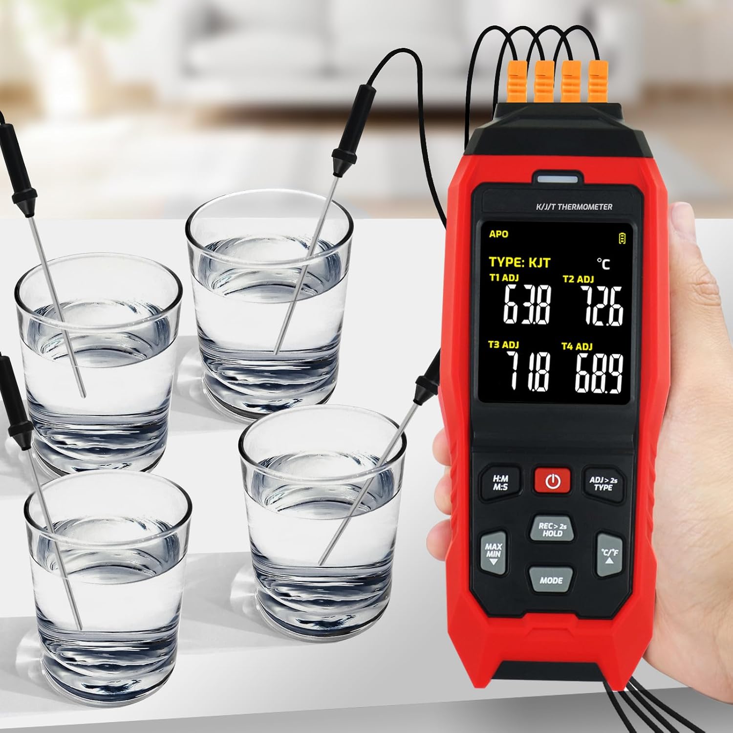 • ✔【Multi-Channel K/J/T Type Thermocouple Thermometer】 It's a 4-channel thermocouple thermometer, can simultaneously monitor multiple points or devices. And the thermometer supports K, J and T type thermocouples great for superheat subcooling temperature measurement, like HVAC systems, microwave oven, furnace, aquarium, and refrigeration equipment
