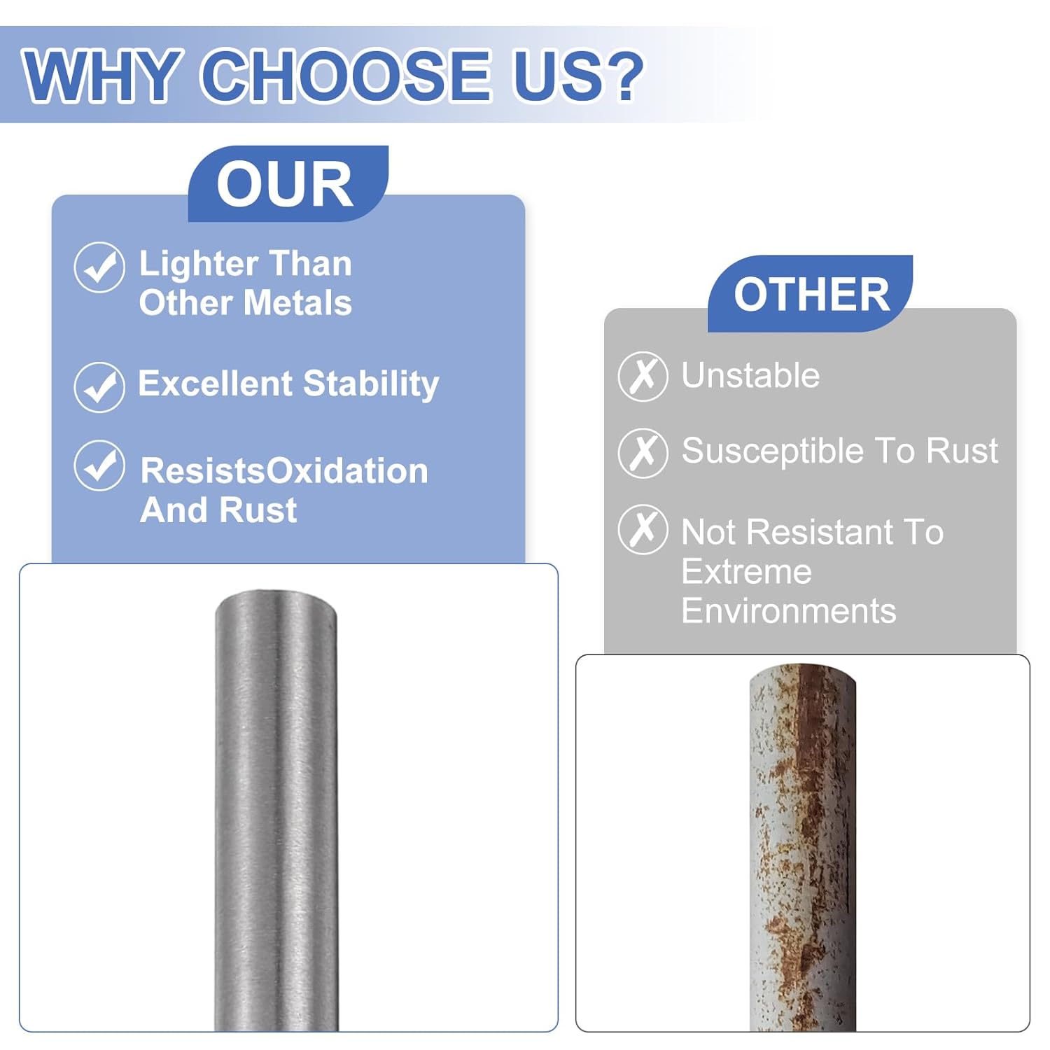 What is it? These titanium alloy bars are used in the aerospace, aerospace, chemical, naval engineering and shipbuilding industries. Titanium bars can also be used in sports equipment, RC vehicles, automotive parts, fasteners, electrolysis projects, custom bolts or pins, forging, DIY electroplating materials, structural modules, various boats, aircraft structural components, landing gears, DIY crafts, shaft gears and screws. What will I receive? Package contains 2 pcs titanium bar Material: TC4 Titanium Size: 8 x 200mm/0.31 x 8 inches (Diameter x Length) What are the advantages of the product? Titanium bars offer high hardness, non-magnetic properties and resistance to deformation. They also have a low density and are lighter than other metals. They are resistant to salt water, chemicals, extreme temperatures, oxidation and rust. Their corrosion resistance makes them more stable, surpassing other metals in extreme environments. How to use it? These titanium bars can be machined in various shapes and lengths by welding, forging, cutting and other processes to meet the needs of different productions. After cleaning the steel parts, store them in a dry environment to ensure long-term use. What should I notice? Please allow for errors due to manual measurement.