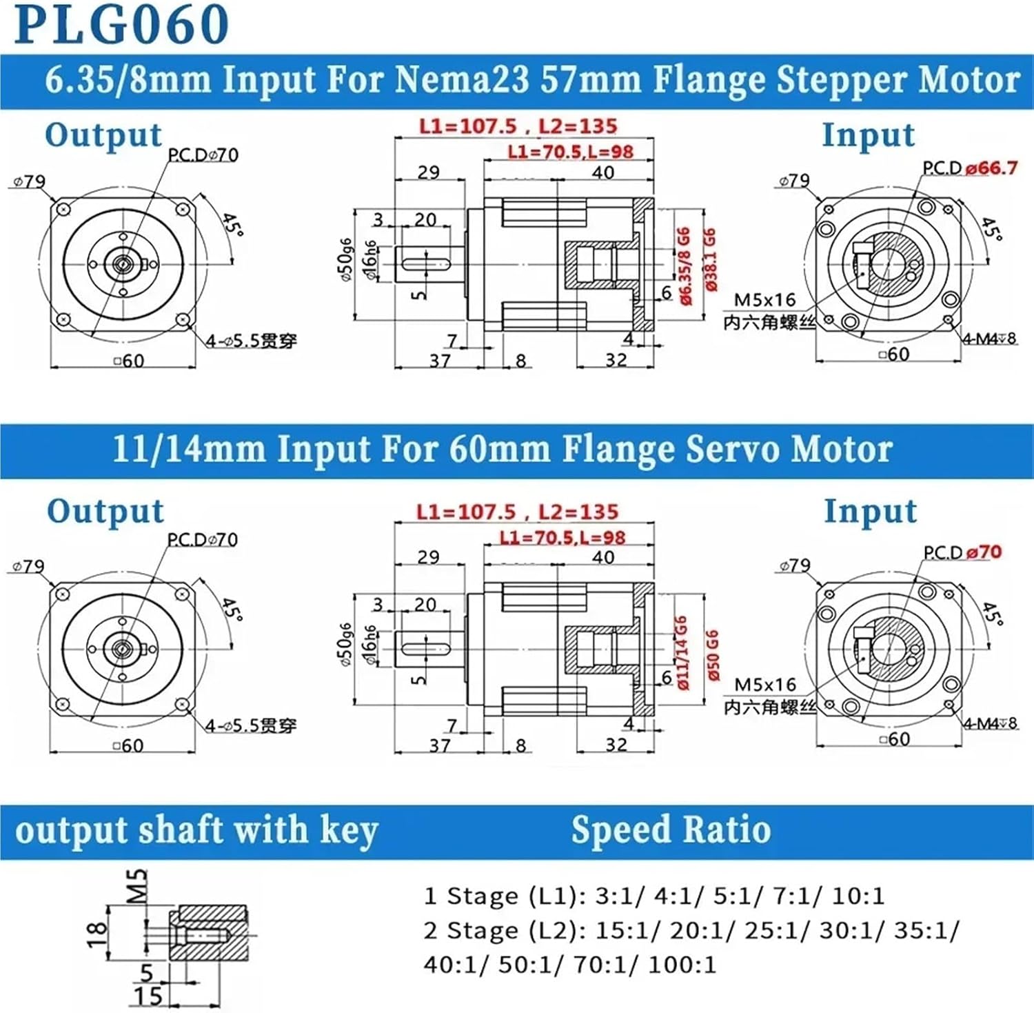 Gearboxes, Gearheads & Speed Reducers1pcs Helical Gear Nema23 Planetary Gearbox Ratio 3:1~100:1 6.35/8/11/14mm Input For 57mm Stepper Motor 60mm 400W Servo Motor Reducer