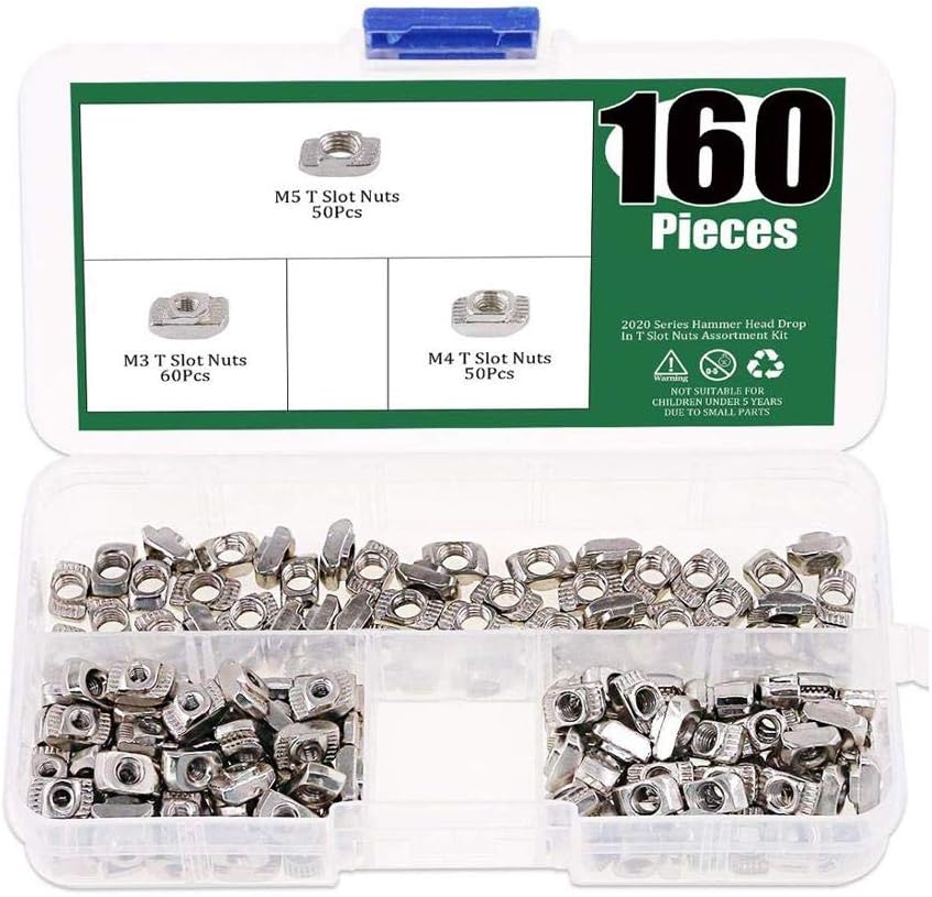 • Package Includes: 150 x M3(50pcs)M4(50pcs)M5(50pcs) Thread T-Nut | 160 x M3(60pcs)M4(50pcs)M5(50pcs) Thread T-Nut | 150 x M3(80pcs)M4(60pcs)M5(60pcs) Thread T-Nut