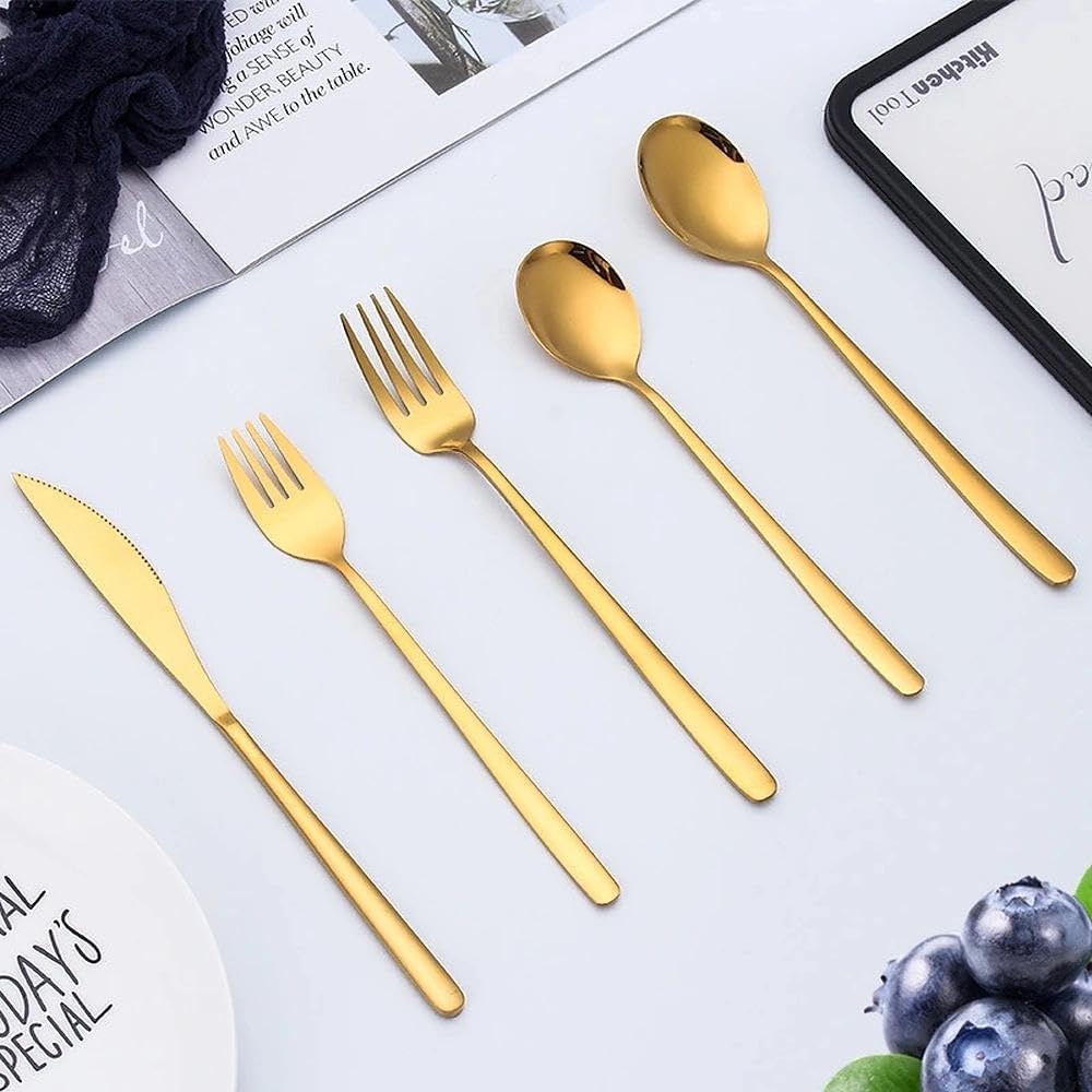 Feature:304 stainless steel, safe, rust-resistant & durable for long-term use.Korean-style elegant design, sleek lines enhance Western dining elegance.Long-handle steak knives, comfortable grip for easy meat cutting.Complete tableware set, includes knives, forks & spoons for full meals.Hotel-grade quality, perfect for fine dining, banquets & family gatherings.Color:Silver, gold, rose gold, blackSize:22*1.8cm,20.2*2.4cm,20.5*4cm,19*2.5cm,18.8*3.6cmMaterial:stainless steelPackage Content:A set of steak dining utensils