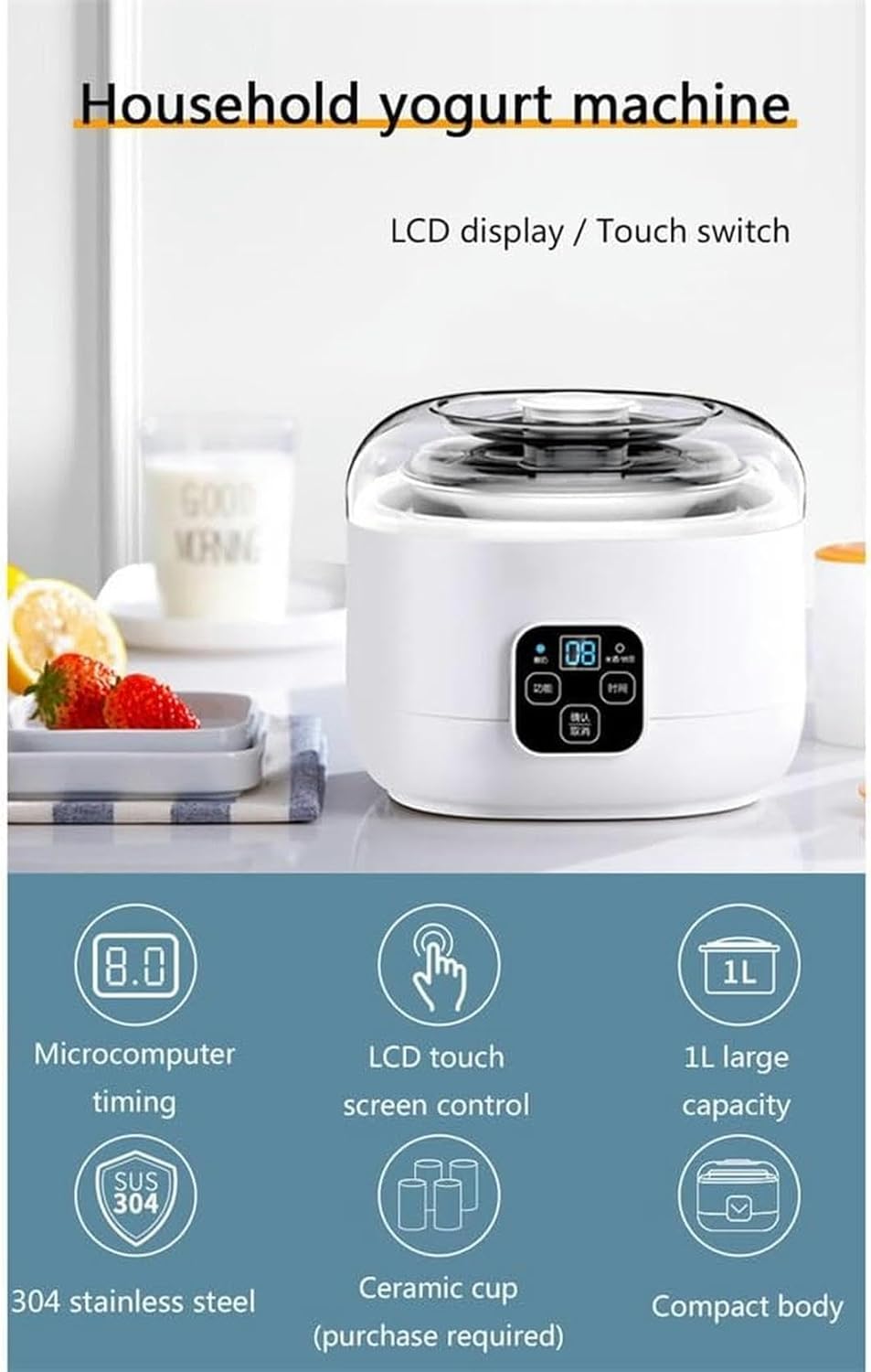 1L Smart Electric Yogurt Maker Natto Rice Wine Machine Automatic Fermentation Stainless Steel Coating