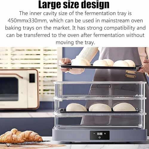 Welcome to our store! Elevate your baking and cooking experience with our 40L fermentation and dough proofing box, an essential tool for bakers, chefs, and home cooks alike. This innovative kitchen appliance streamlines the fermentation process, featuring precise electronic temperature control ranging from 20-50°C and customizable time settings, ensuring you achieve reliable results tailored to your fermentation needs. Versatile applications include: - Dough proofing: First fermentation at 28°C, second fermentation at 38°C - Yogurt making: Optimal temperatures of 40-50°C - Food heating: Ideal for warming dishes at 40-50°C - Italian cheese production (like ricotta): Perfect at 36°C - Sweet wine fermentation: Best results between 28-35°C Key advantages: - Generous 40L capacity allows for multiple loaves or trays, making batch preparation efficient and convenient. - Consistent and even heating provided by 130W power ensures optimal temperature distribution for all your fermentation tasks. - A user-friendly digital panel allows for effortless adjustments to time and temperature, helping you achieve perfect results every time. - Durable stainless steel interior with removable shelves simplifies cleaning and maintenance. Specifications: - Model: CF240C - Voltage: 220V-50Hz - Power: 130W - Product dimensions: 489 x 364 x 328 mm - Packaging dimensions: 540 x 422 x 400 mm - Net weight: 6.6kg - Package includes: 1 x Fermentation box Experience the joy of creating delicious baked goods, homemade yogurt, and artisanal cheeses with our fermentation box. Unlock your culinary potential today!