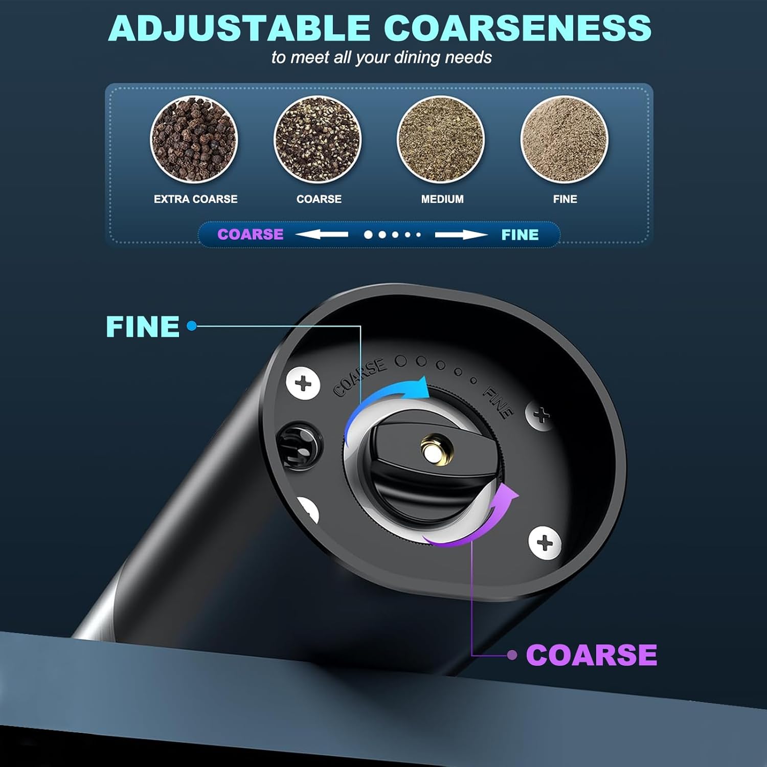 | Included Components | 8 Rechargeable batteries, Charging base ,Type C charging cable, Rechargeable Electric Salt and Pepper Grinder Set, Spoon and 2*Brush, Steak Knife and Fork |