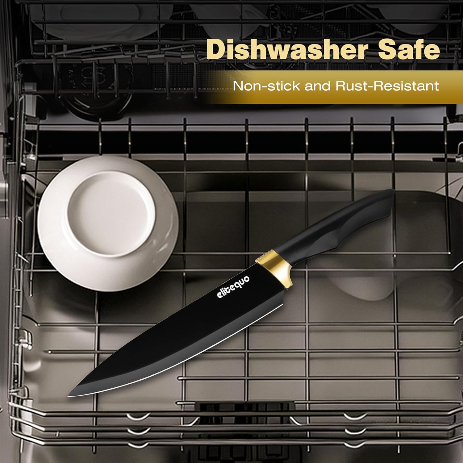 • Dishwasher Safe Convenience: Skip the tedious handwashing! This knife set is fully dishwasher safe, so you can just toss the knives (and compatible block parts) in after use. It saves you time and effort, and the blade’s non-stick and rust-resistant qualities stay intact even after repeated washes