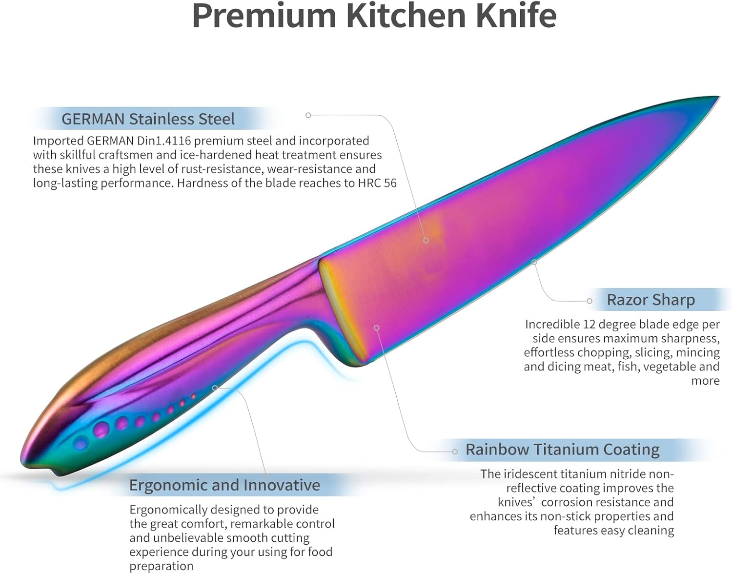 | Included Components | 5 inch Utility Knife, 7 inch Santoku Knife, 8 inch Bread Knife, 8 inch Chef Knife, 8 inch Slicer Knife |