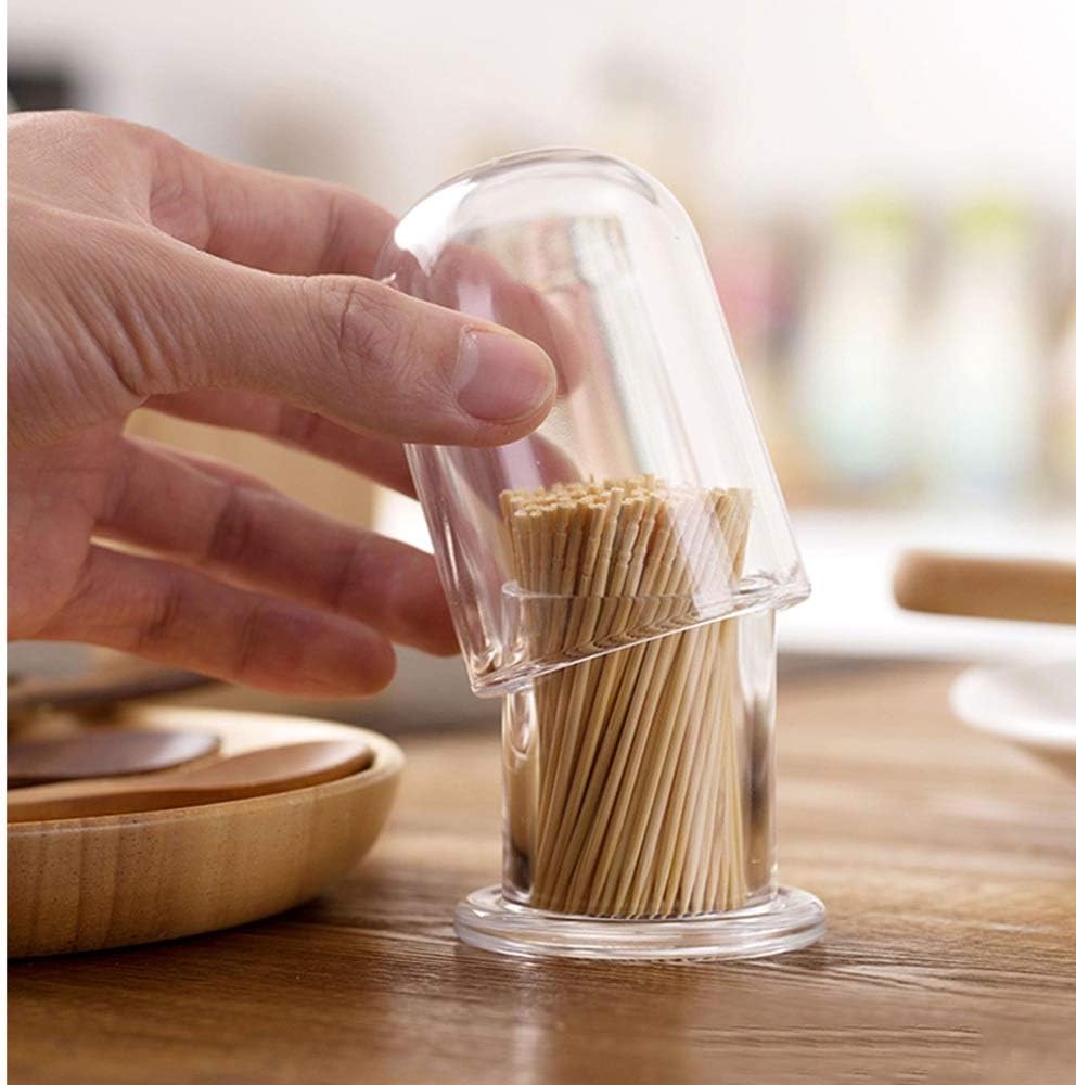 Size: 8*5 cm 。Material: PS。Gross weight: 70g。Summary: Simple toothpick holder, PS material。Smooth polishing, texture。Thick base, stable placement。Non-porous sealing cover, effective dustproof。Placed in the coffee table, dining table, kitchen cabinet, etc., easy to use.Package includes: 1 piece of toothpick holderHome creative automatically pops up toothpick box home living room dining room toothpick storage box.
