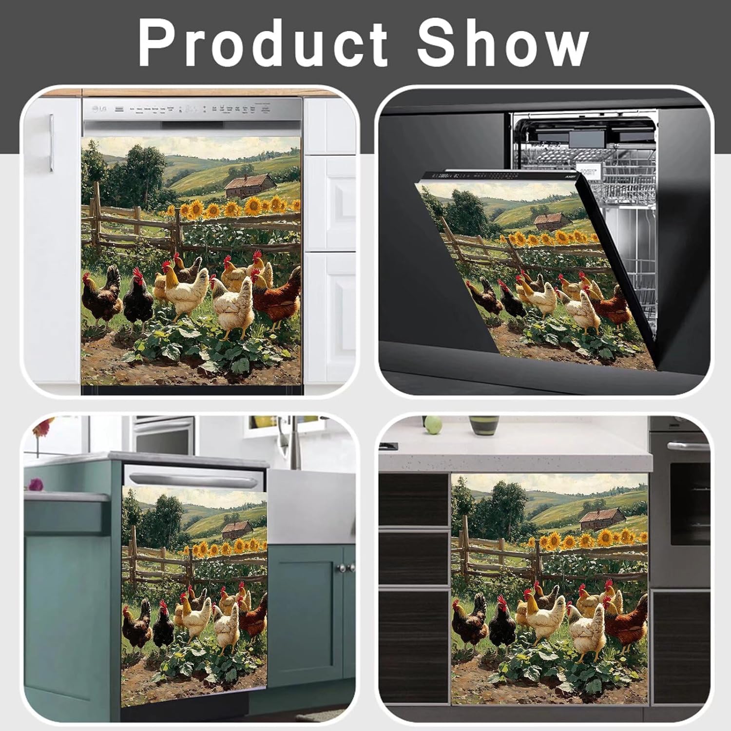 • DESIGN: Farm Rooster Hen Dishwasher magnets decorative cover affixes instantly to the front of dishwasher. Make your kitchen more visually appealing with our dishwasher magnetic cover.