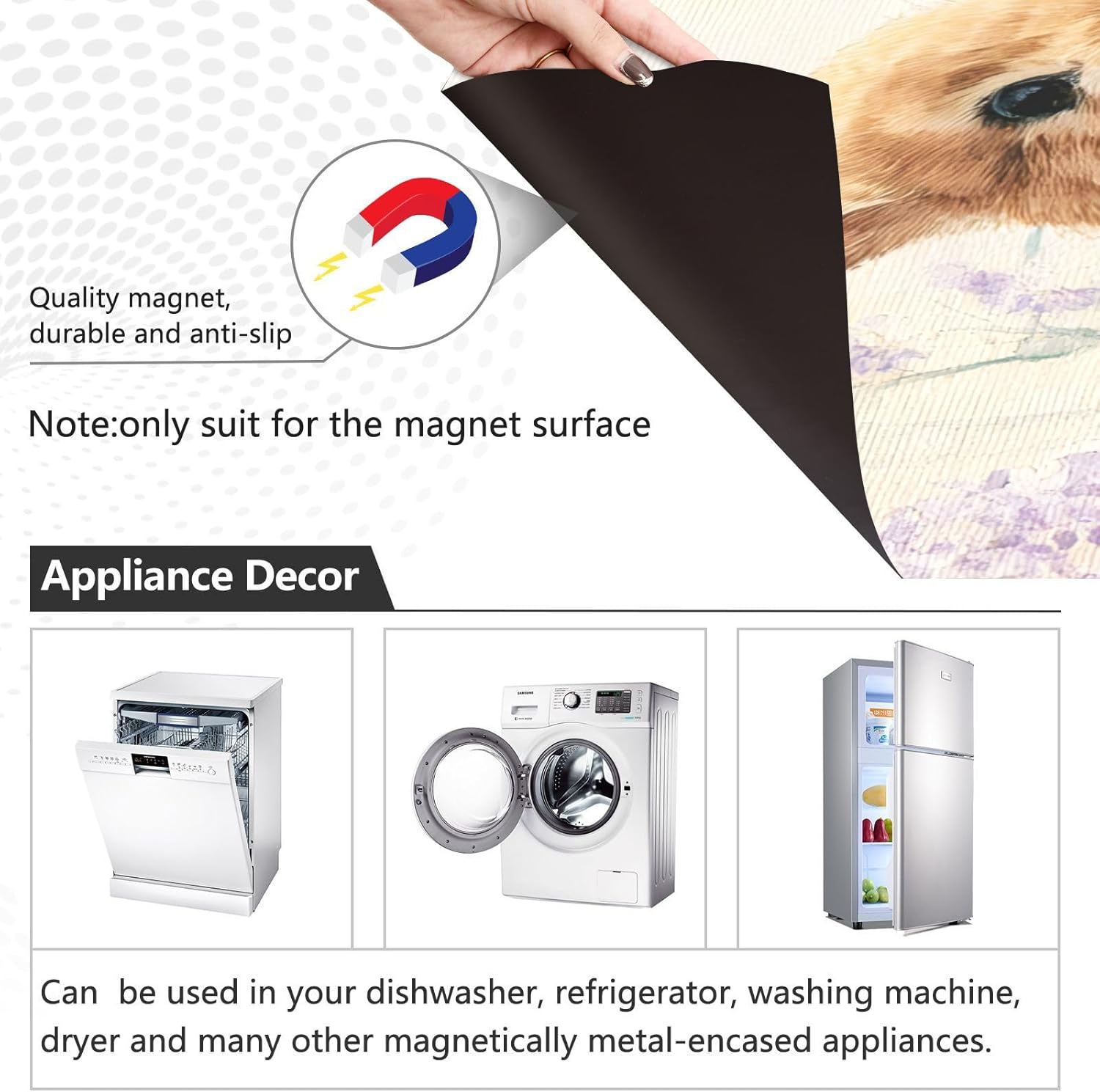 Decorate your kitchen life!This magnetic dishwasher cover is a work of art, decorating your kitchen art, with a sense of fashion and art, highlighting your quality life!Size in 23 x 26 inches. This size fits most dishwashers.Cut it to your own size to fits your need.FeatureWaterproof, heat resistant, scratch and tear resistant. Magnetic stickers hide scratches, dents or other unsightly marks.Magnetic MaterialMagnetic sticker will not fall from magnetic dishwasher and disassemble easily.Protect the dishwasher from scratches, it can also decorate your kitchen home.Please NoteMagnetic dishwasher cover is made of PVC+PET, only suit for the magnet surface.Install: Trim the proofreading position, the magnetic force on the back will stick to it.