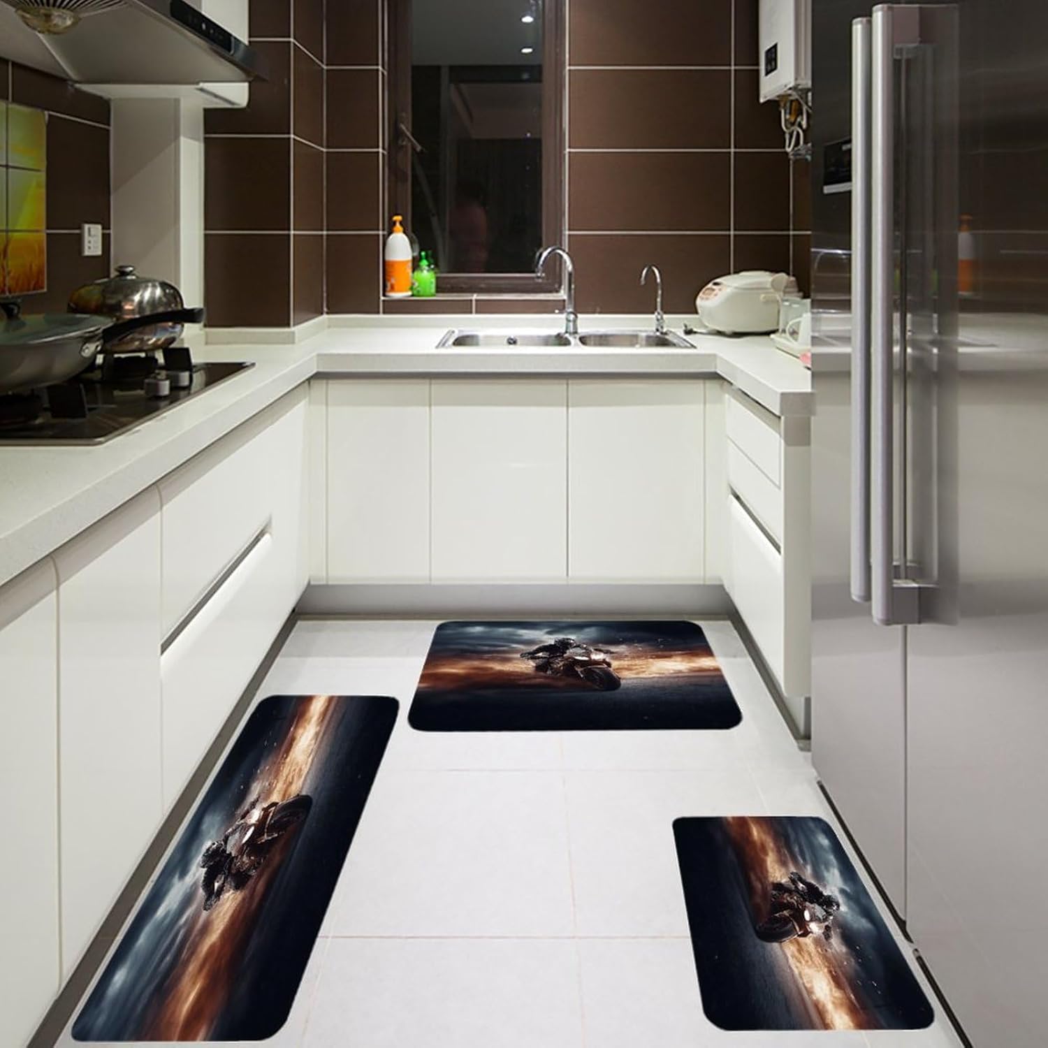 Transform your living spaces with this essential Man Ride A Motorcycle three-piece set of mats,designed to merge everyday function with effortless style.These washable kitchen mats,crafted from a distinctive Fiber Flannel,introduce a layer of plush softness that welcomes you from the first step.Imagine the comfort of natural,thickened fibers underfoot as you move through your daily routines,whether you're preparing a meal or freshening up.The set's versatile design allows it to adapt beautifully,serving equally well as farmhouse bathroom rugs or soft entryway runner rugs,proving that comfort should have no single address.Beyond their immediate comfort,these mats are conceived for real-life ease and adaptability.As dedicated anti fatigue Man Ride A Motorcycle kitchen mats for floor areas,they provide a forgiving surface during prolonged tasks.Need a reliable carpet for sink areas to catch drips and spills?This set has you covered.You can freely place them in moisture areas or traffic zones,knowing their performance remains consistent.These are more than mere kitchen utensils;they are subtle yet impactful seasonal home Man Ride A Motorcycle decor mats.Change the feel of your space by rotating them or moving them from a spring kitchen carpets setup to a cozy autumn nook.Their cohesive look ties different areas together,enhancing the overall beauty and warmth of your interior.Their breathable and gentle texture makes them a reliable companion in any room,offering a consistently pleasant foundation.