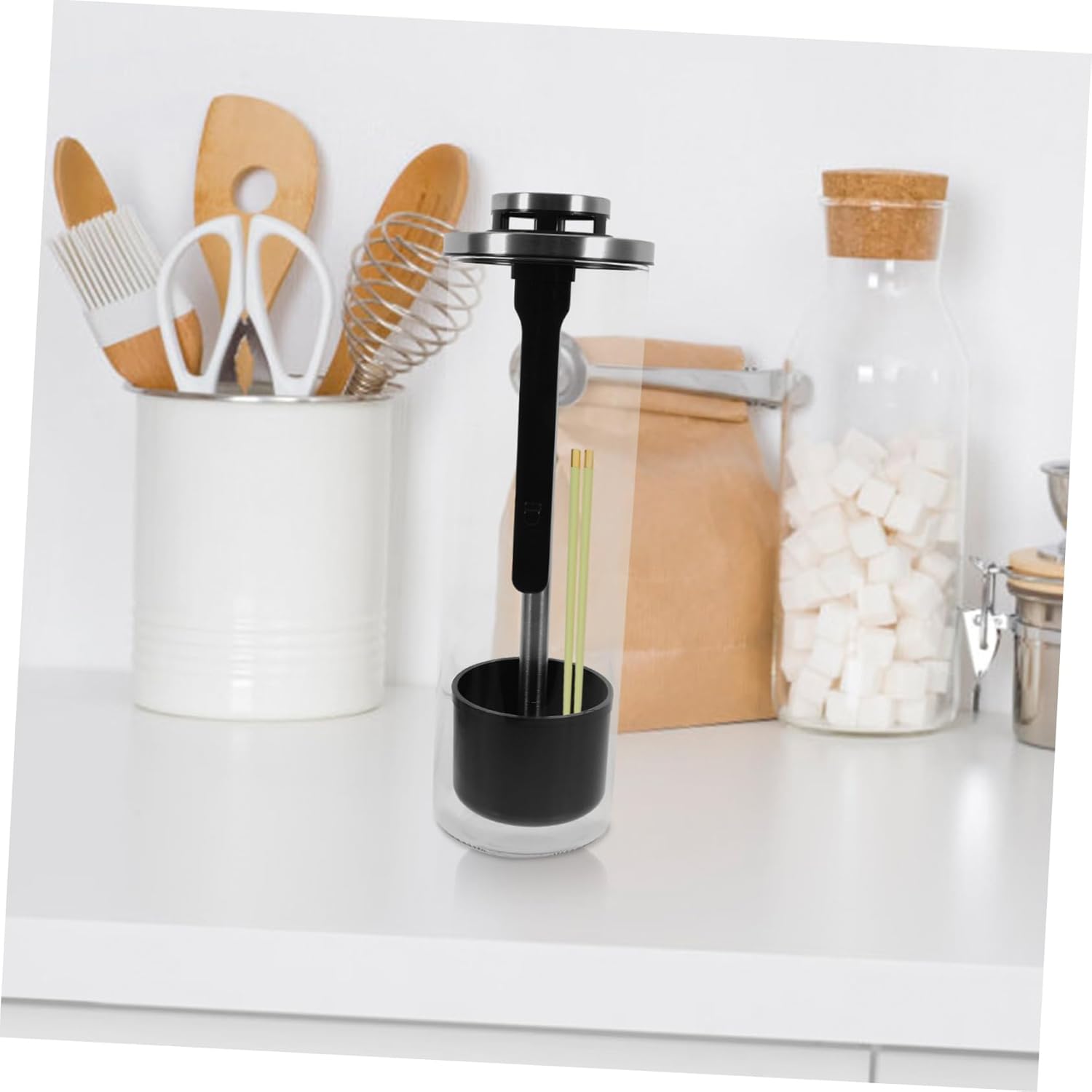 Package Include 1 x Straw Dispenser Features -Color:Black straw holder for counter with lid -Material:Stainless steel, glass, silicone Straw Container -Size:32.00X9.00X9.00cm/12.58X3.54X3.54in Chopstick Bucket -Put it in for a great cutlery arrangement, suitable for home, hotel, restaurant, and tea shop straw dispenser for pencils. -Made of materials, and . It has a stylish and simple appearance and does not take up too much space Home Storage Bucket. -Make full use of the space, and keep the desktop clean. Modern appearance design, giving you a visual enjoyment Household Chopsticks Container. -The product is storing spoons, straws, pens, makeup , forks, chopsticks, silverware or other small utensils Modern Chopstick Holder. -Suitable for storing straws and keeping cooking utensils tidy on the workbench Kitchen Supply.Goods DescriptionMakeup Brush Storage Holder Designed with multi-use design for better space-saving and multiple purpose.kitchen chopstick bucket Are you looking for a creative and storage bucket for your straws? Our products can meet all your requirements with and reliable material for a long time use