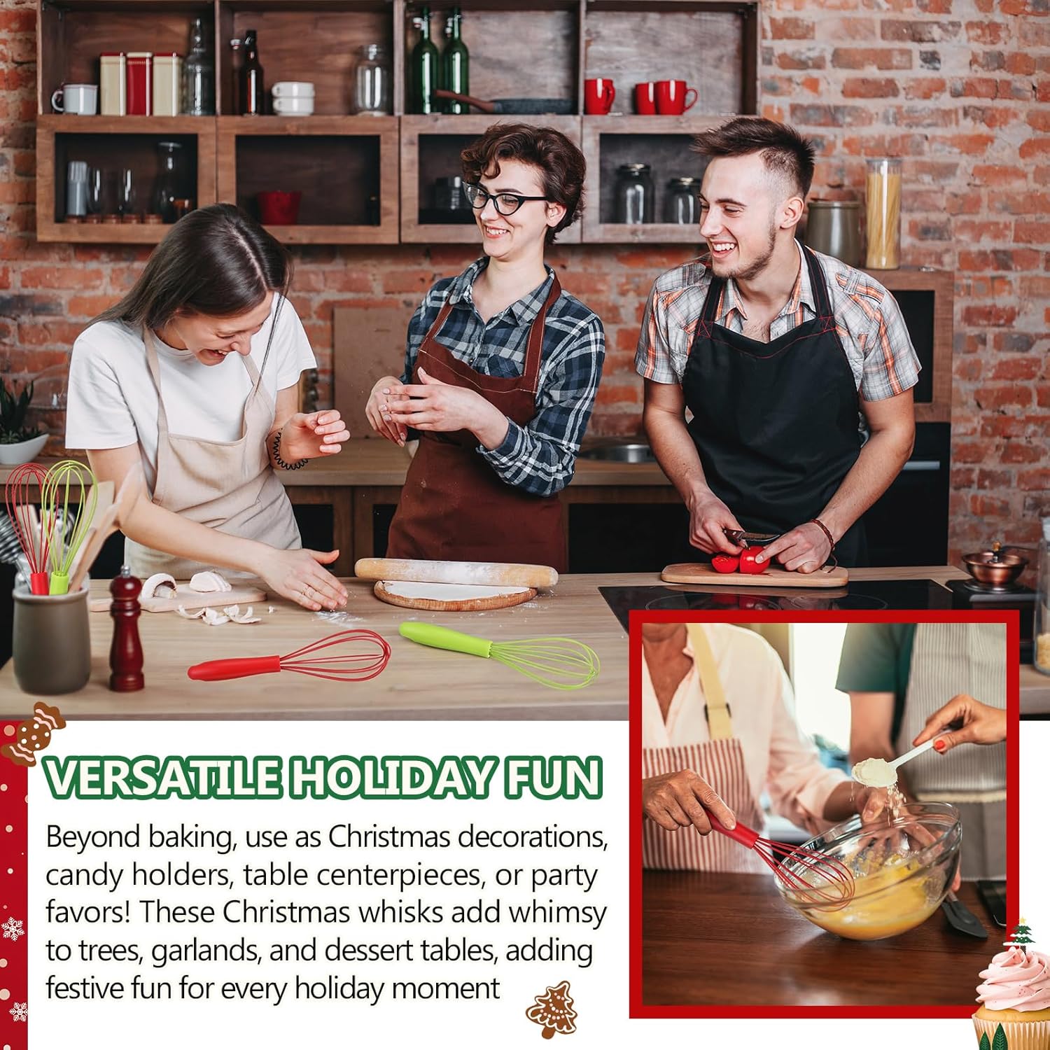 Features: We Whisk You a Merry Christmas Gift Bulk: transform whisks into charming DIY Christmas ornaments! Fill with candies, chocolates or small gifts, attach a tag, and hang on trees as edible decorations. A creative twist on traditional holiday crafts Versatile Holiday Fun: beyond baking, use as Christmas decorations, candy holders, table centerpieces, or party favors! These Christmas whisks add whimsy to trees, garlands, and dessert tables, adding festive fun for every holiday moment Material: silicone, PP material Color: red, green Size: about 25 cm/ 9.84 inches Package includes: 60 x Christmas Whisks Notes: Manual measurement, please allow slight errors on size. The color may exist a slight difference due to different screen displays