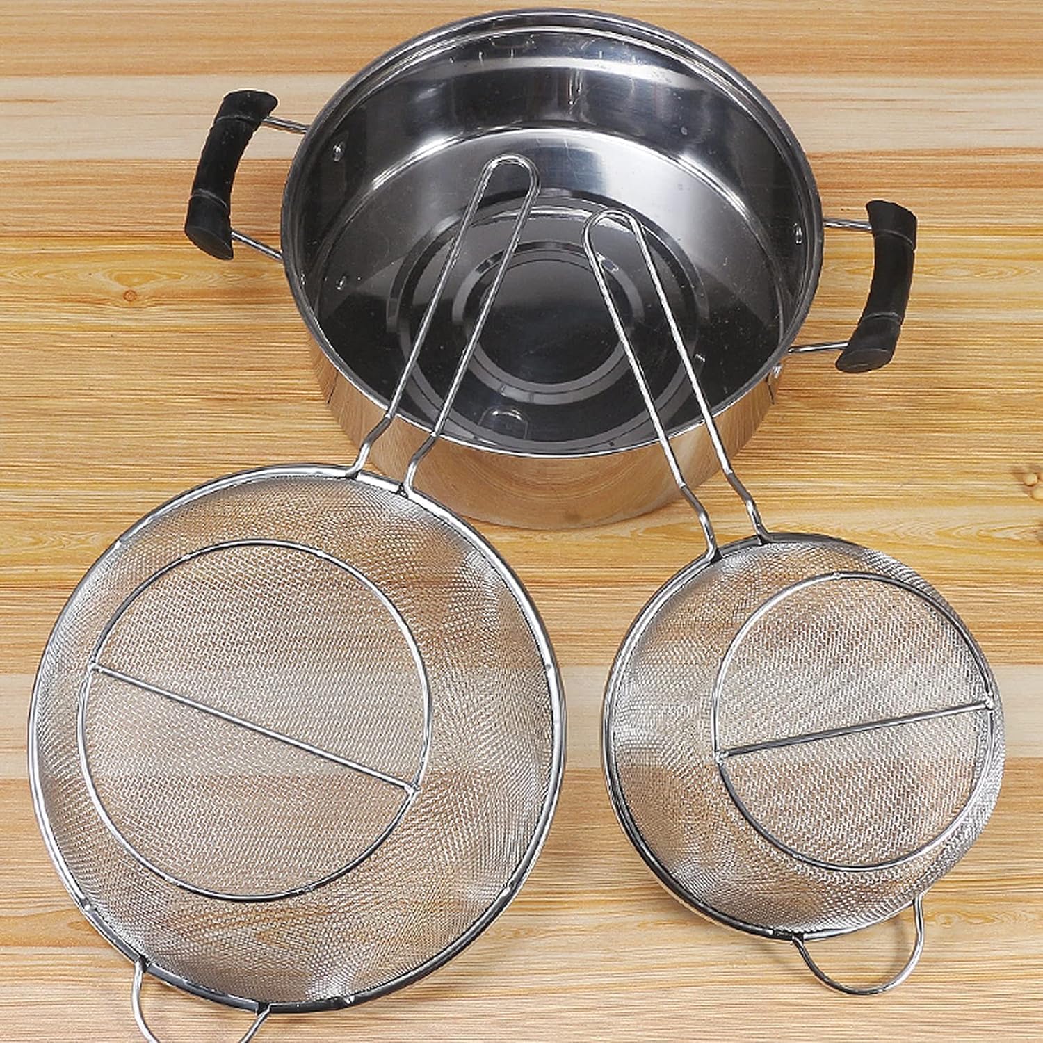 Name: round frying basket/filterMaterial: Stainless steelElevate your frying experience with our stainless steel fry basket, expertly crafted for durability and efficiency. This round frying basket is ideal for making perfectly crispy French fries and a variety of fried foods. Its fine mesh strainer screen allows for quick drainage, ensuring your food stays crispy without excess oil. Suitable for use in home kitchens, hotels, or restaurants, this versatile kitchen frying basket is easy to clean and built to withstand high temperatures. Enjoy deliciously fried dishes every time with this essential cooking tool in your kitchen arsenal!
