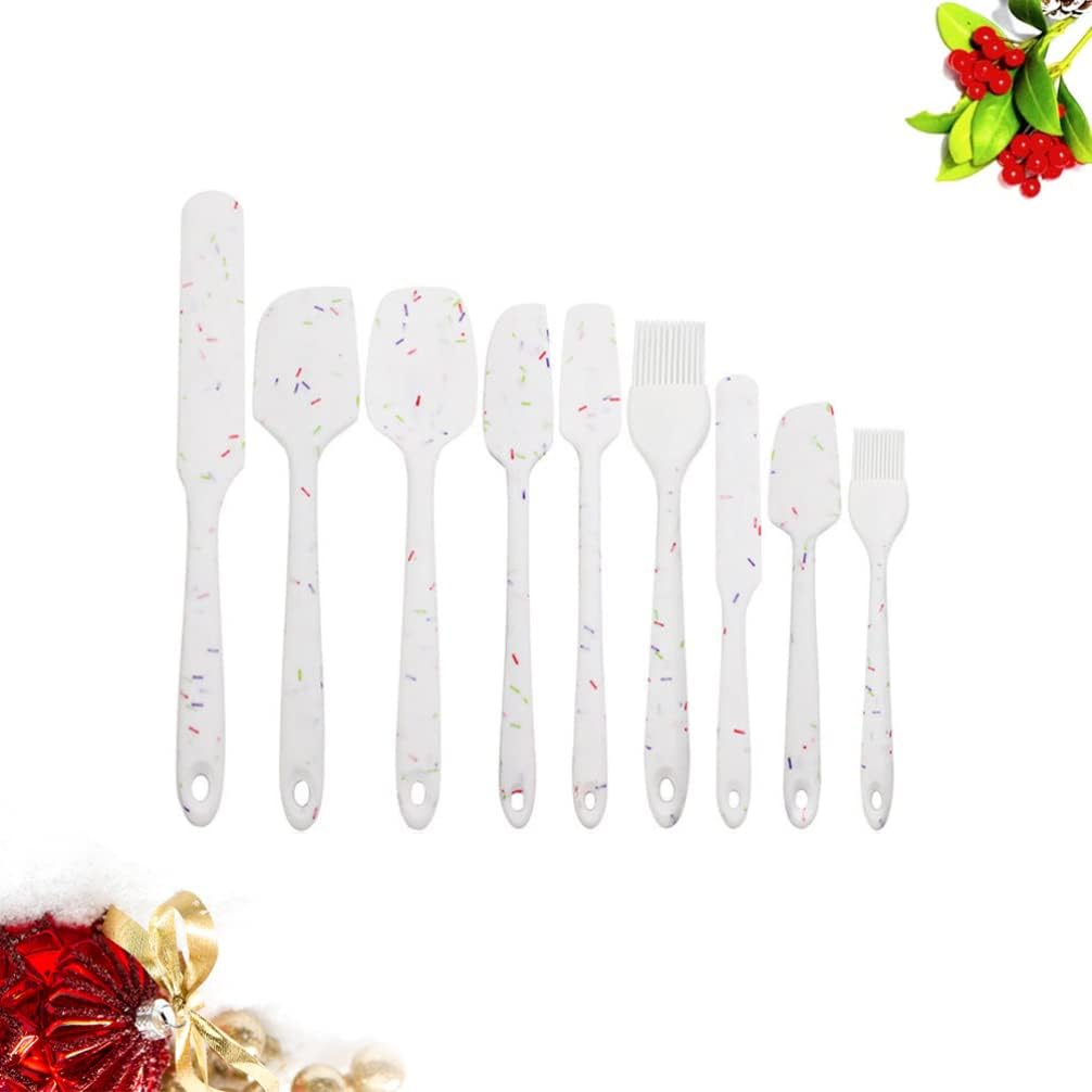 DescriptionSilicone Spatula Flexible Butter Scraper: 9pcs Non Stick Flexible Spatula Rubber Butter Cake Cream Spatulas Seamless Scraper Spoon for Cooking BakingFeatures- Size: 33.3x3.4cm.- Material: silicone- Color: White.Package Including7 x Icing Spatula2 x brush