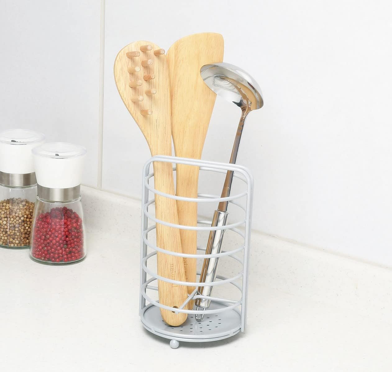 Product Size (W x D x H): Approx. 4.5 x 4.5 x 7.3 inches (11.5 x 11.5 x 18.5 Product Weight: Approx. 1.0 lbs (0.28 kg). Material: Iron (epoxy resin coating). Country of Origin: China. Keep your kitchen neat and organized. Storage Choice Series The simple and functional form is sure to be a great addition to your kitchen. Make effective use of space above the sink or under the sink. 4 compartments for stable storage of turners, spoons, chopsticks, etc. Note: Please note that we will not be responsible for any damages, damages or accidents arising from rental or other selling, used sales or renting due to transfer.