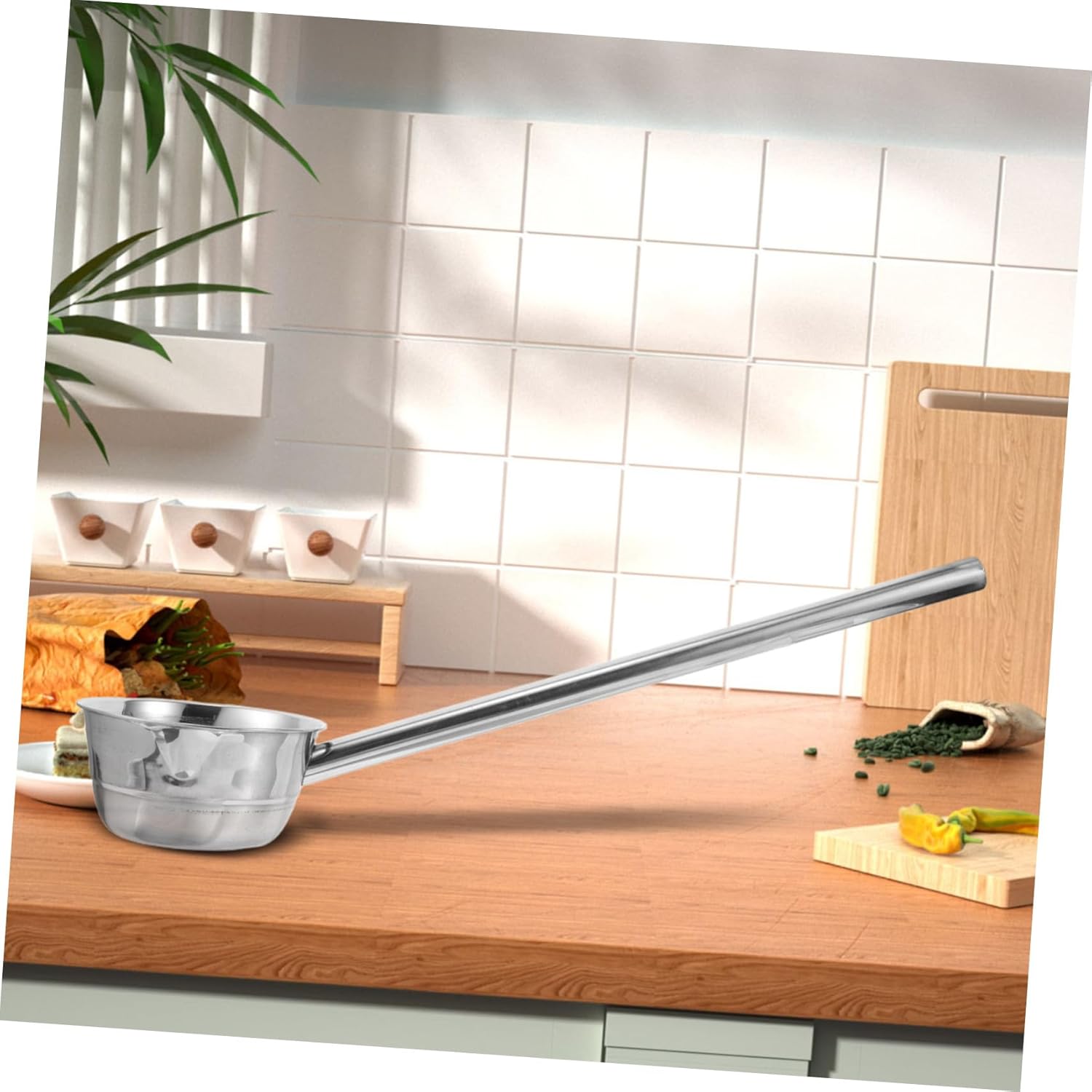 Package List 1 ladle Features -Size:56.50X15.00X8.00cm/22.20X5.89X3.14in (56.5cm) water ladle -Ergonomic handle: the ladle features an ergonomically designed handle that provides a secure and comfortable grip, reducing hand strain large ladle -Multiuse: suitable for various settings including home, garden, and farm, making it a versatile addition to your kitchen tools stainless steel soup ladle -Extended handle design: the long handle design makes it easy to scoop water, reducing the need for excessive reaching or bending stainless ladle -Material:Stainless steel long soup ladle - Color: Silver soup ladles for serving -great for busy kitchens: this wellbalanced utensil is ideal for any busy kitchen, offering convenience and ease of cleaning ladles for cooking -Size:47.00X15.00X8.00cm/18.47X5.89X3.14in (47cm) metal soup ladle -great material: constructed from great stainless steel, this ladle is resistant to stains, and food residues, ensuring easy maintenance long handle water ladleGoods Informationladle spoon Its construction makes it a great and reliable kitchen gadget for everyday use.metal soup ladle The long handle provides a secure grip, while the pour spout precise pouring without spills.soup ladles for serving With its large capacity and ergonomic design, this stainless steel ladle is great for serving soups, stews, and other liquid dishes