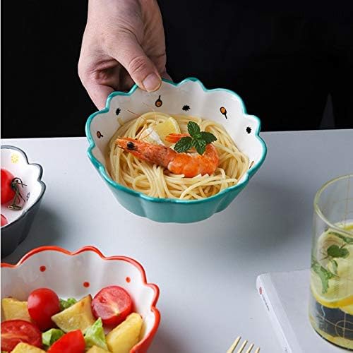 The touch is warm and delicate, not easy to wear, discolor, and easy to clean.Ceramic safe and material.Chic lace , large capacity design.A small deep bowl is suitable for holding fruit salad, etc.Applicable : the publicFlower-shaped ceramic salad bowl.Material: PorcelainPattern: Plant flowers: Nordic Place of Origin: Mainland ChinaBowl diameter: 6 Number: 1*bowlTea tableware craft: underglaze*Precautions:① Ceramic products will inevitably have small defects such as lack of glaze, small black spots, bumps, etc., which are not quality problems.②Due to the abrasive tool, the edging of the product is occasionally raised and slightly uneven, which does not affect the appearance.③Ceramic products are fragile, please store carefully.Whether it's a comfortable family breakfast or a lively gathering with friends, our fashionable cutlery collection can enhance your dining experience in any occasion