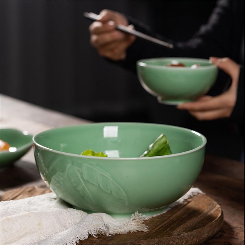 The porcelain is tough and heat resistant without cracking, and can be used in microwave, oven and other appliances.The surface has a sculpted texture with a soft sheen that makes your food look more delicious.Made of ceramic, not hot to hold on the end, the bowl bottom raised design, hold steady and not easy to slip your hand.The glaze is smooth and can be cleaned with light water for a beautiful display in your cabinet.This soup bowl can hold salads, vegetables, fruits, mixed dressings and your favorite foods.Material: porcelain.Shape: round.Size: 20*8.5CM.Package content: 1*soup bowl (other display items are not included).1 Color may differ slightly from the image due to differences in light and screen.2. Due to the manual measurement, please allow a 1-3 cm difference.Whether it's a comfortable family breakfast or a lively gathering with friends, our fashionable cutlery collection can enhance your dining experience in any occasion