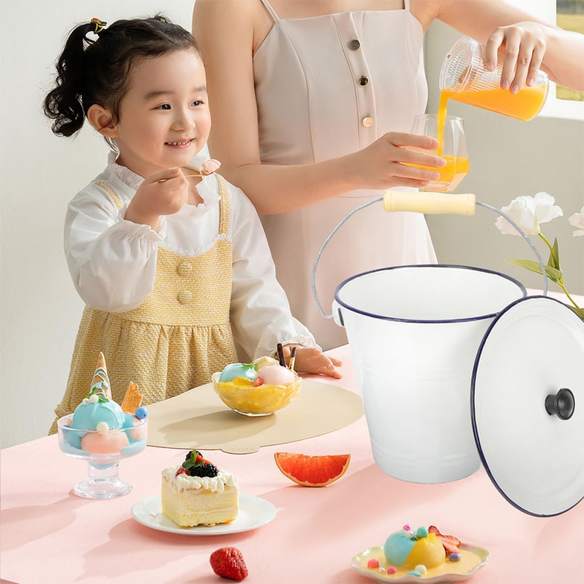 Package List 1 x enamel bucket with lid Features -Material:Enamel, wood milk bucket - Size: 26.00X26.00X25.00cm/10.22X10.22X9.82in large white enamel bucket - Color: White bucketsGoods Informationmilk transport bucket The handle is sturdy, safe and powerful to carry.large white enamel bucket The inner wall of the barrel is very smooth and will not scratch your hands during cleaning.enamel food buckets It can be flexibly adapted to almost liquid and is family use.enamel buckets with lids This enamel bucket is resistant to fall and wear, and is not easy to break