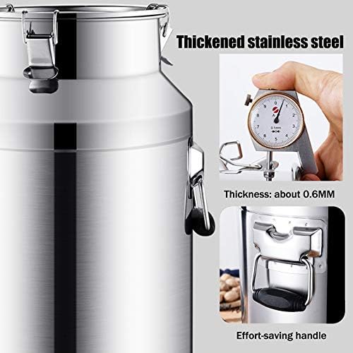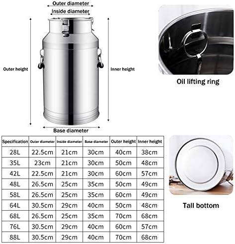 Excellent seal, no spills: Silicone seal and embedded silicone seal for a more airtight seal. The stainless steel milk jug features a triple-lock closure to prevent accidental spills. High-quality material: The milk jug is made of 304 stainless steel with a smooth, mirror-polished, dent-resistant finish. The smooth, flat interior is less prone to dust and dirt accumulation, leaving no residue. Available in a variety of capacities: 28L, 35L, 42L, 48L, 58L, 64L, 68L, 78L, and 88L. This ideal milking bucket with a lid is ideal for storing oil, ghee, milk, wine, and more. Independently removable design: No welding required, the lid is completely independent and removable. Removal and cleaning are very convenient. Widely applicable: Easy to store liquid products without leaks. Highly heat-resistant. Ideal for storing oil, ghee, milk, and more.