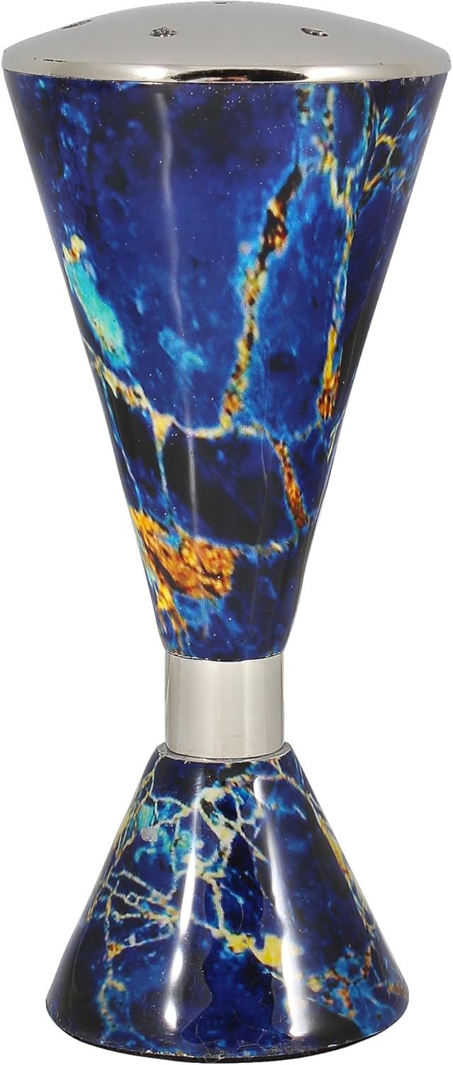 Elegant Nickel Plated Marble Decal Decor Havdalah set. Classic Blue Marble design. Includes the following: Full size Kiddush cup, Candle holder, Besamim holder and matching tray.