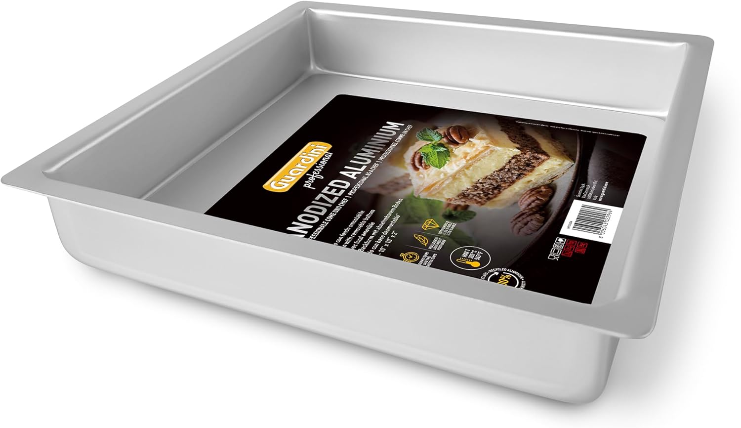 Product details: The new Guardini Professional collection is an elegant line with high professional performance, with its silver colour. This line uses a new material, anodised aluminium, which allows you to prepare sweet and savory like a real chef! This elegance is combined with high quality performance and equally elegant and classy packaging. This material also allows for easy cleaning after use. Due to its high abrasion resistance, it is recommended for intensive and high level use. Maximum operating temperature: 285ºC. Material: anodised recycled aluminium. Features: PFAS FREE Dimensions: 26 x 26 x 5 cm Max temperature: 285°C Colour: Silver The Italian pleasure of cooking: The story of Guardini stems from a strong passion for cooking and the inexhaustible desire to create a world tailored to the consumer, combining tradition and innovation. In 70 years of history, the artisan workshop has become the leading company that has revolutionized the world of baking moulds, thanks to its cutting-edge products and the first non-stick coatings that become the hallmark of the company. The lightness of Guardini products is an invitation to fully enjoy the beauty of the kitchen, without worries and with a creative spirit. For baking in the oven, in fact, low thickness molds are required to allow the mixture in cooking (whether sweet or salty) to be in almost direct contact with the heat generated inside the oven. This is the only way to cook evenly and evenly. Guardini moulds, made with a special low-thickness steel, create a minimum barrier and are therefore designed to ensure perfect cooking. With Guardini, cooking tastes new.