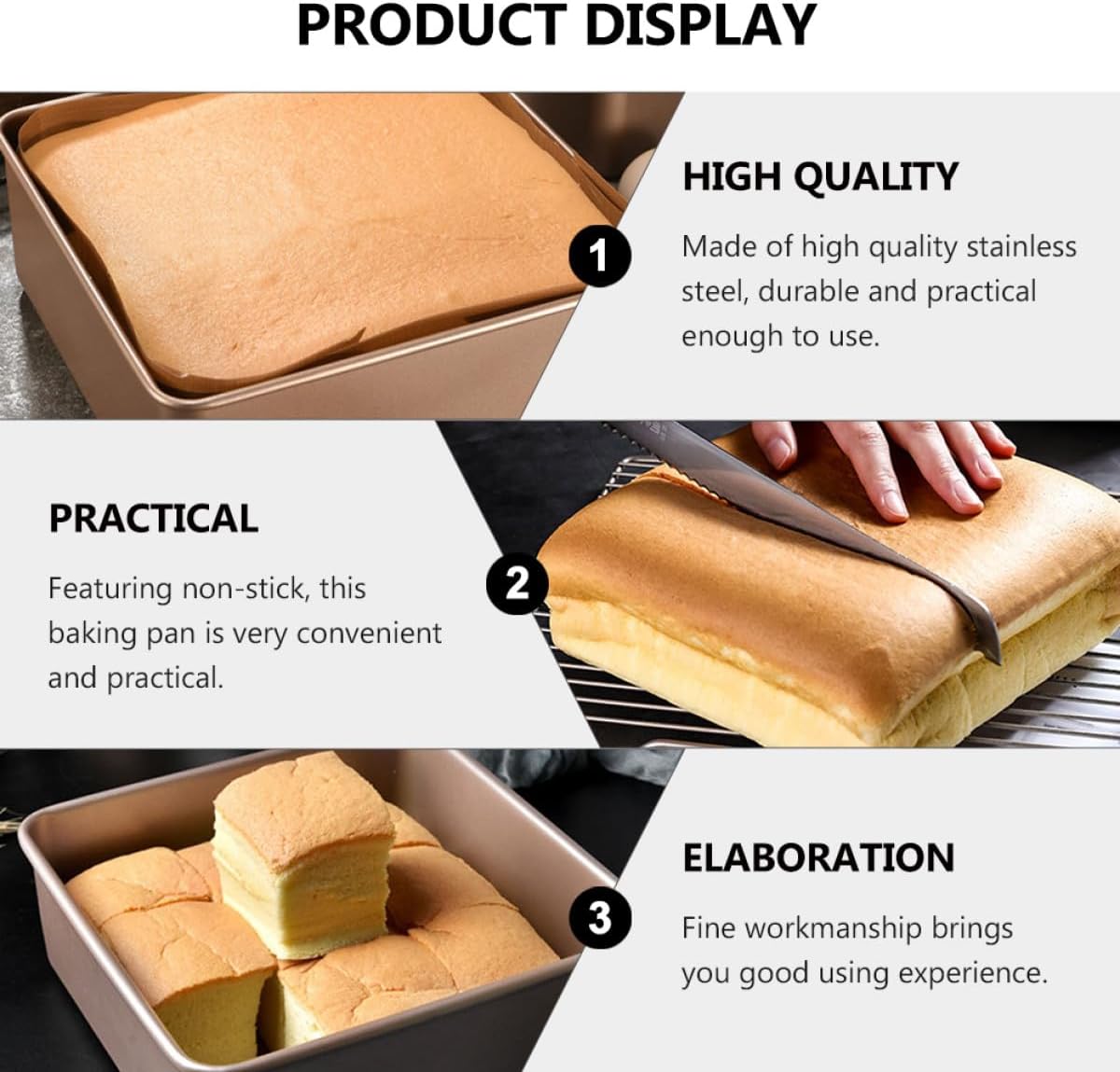 Package Include 1 x cake pan Characteristics -Product Info:Cake baking tray - Material: Stainless steel. - Size: About 23.50X23.50X8.00cm/9.24X9.24X3.14inch. - It has large volume, can easy to shape the cake and roast various food rectangle pan. - Gold - Perfect for cake baking, food roasting, such as chicken, meat, fish, beef, vegetables and so on Square Pan. - Wide roll and smooth edges are easy to hold and avoid hurting your hand square cake mold. - It's , also can put in dishwasher, which can save time and labor baking pan outdoor. - Rust and material is perfect for many years.Goods Informationbaking pan tray Are you looking for a professional, yet cake pan? Are you in search of a sturdy, trustworthy tool that can do multiple jobs at once? , ! Our professional cake pan must meet your need.cheesecake baking pan It is the for you