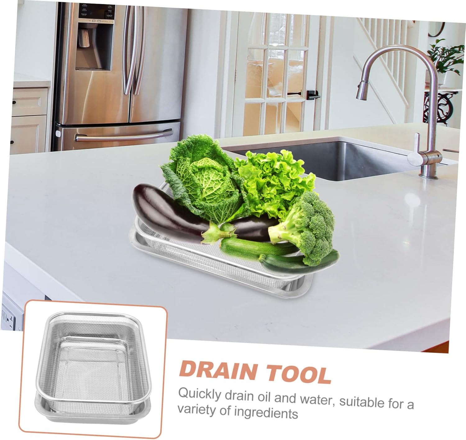 Package Include 2 x Basket 2 x Tray Features -Size: 31.50X21.50X7.00cm/12.38X8.45X2 Cooling Rack Pan. -Color: Silver Oil Spill Net -Note: The style is random Baking Sheet with Rack. -Material: Stainless steel rack basket - The polishing process makes it easy for you to clean, saving time and labor Cake Rack. - A helper for your families and friends who like eating baking food and fried food metal colander stainless steel. - The grid rack can be used as a cooling rack for bread or other food alone stainless steel cooling racks. - The thickened base is not easy to break and deform, long serving life Cookie Sheet Pan. - Quickly drain oil and water, suitable for a variety of ingredients Cooling Rack Plate.Goods InformationBaking Pan Are you looking for a creative baking sheet pan? If so, our baking sheet pan with rack kit is carefully prepared for you.Stainless Steel Mesh Colander You deserve to have one set.stainless steel strainer Creative design and fine craftsmanship ensure its practicality and popularity