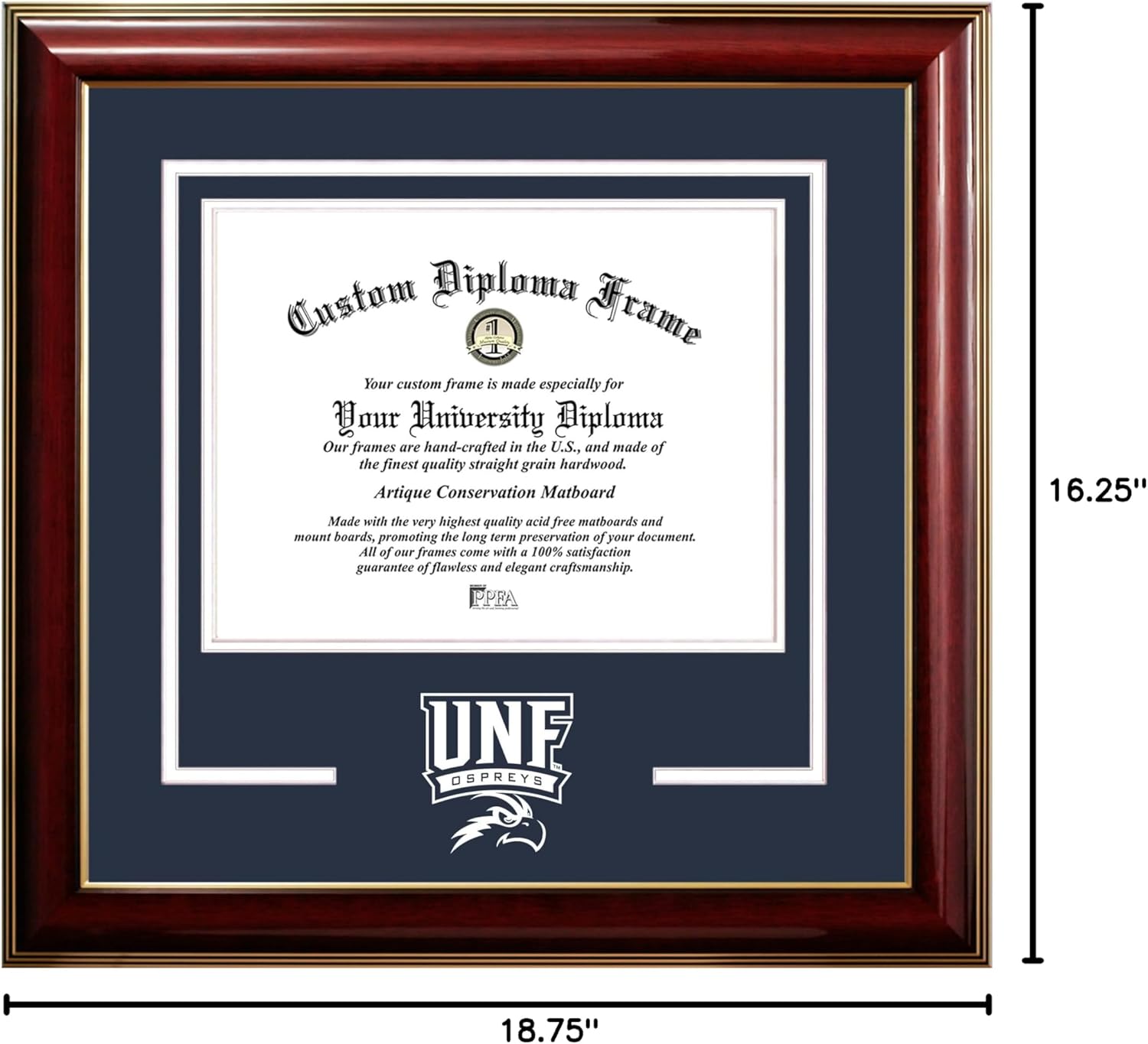 Classic Mahogany with gold trim Spirit logo diploma frame. Double matted in your school's colors, the team logo or mascot is proudly displayed. Everything you need to insert your document and hang the frame is included.