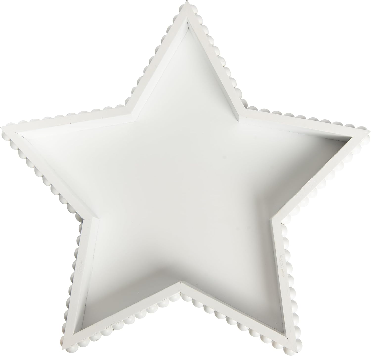 Wood 15.25" White Christmas Beaded Edge Star Shaped Tray