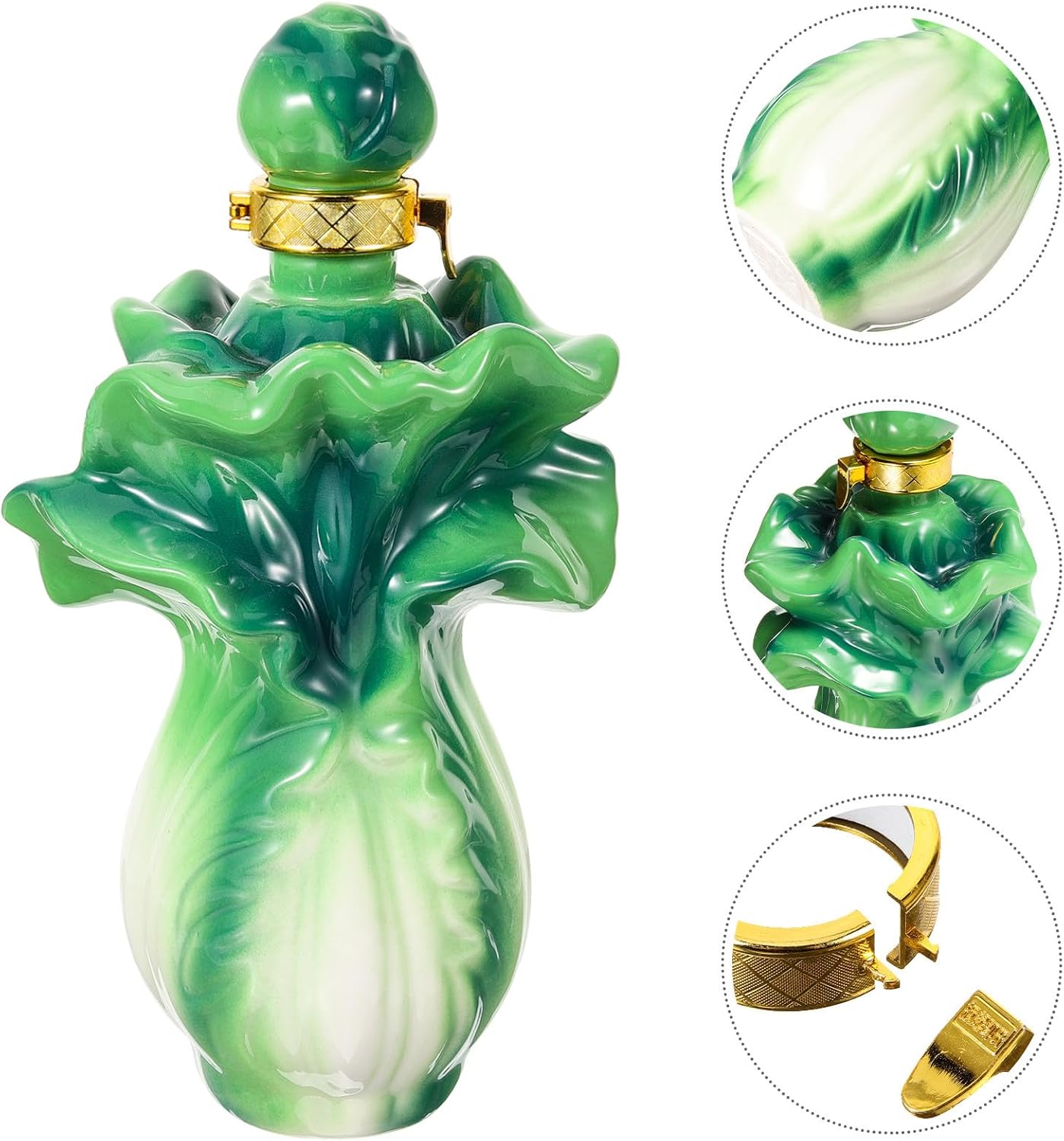 Package Include 1 x liquor container Features -Product Info:Ceramic wine bottle -Capacity:500g little bottles with lids -Color:As Shown -Size:27.50X15.00X11.00cm/10.81X5.89X4.32in -Material:Ceramic - Perfect for storing and serving your favorite liquor. Makes a great gift for many occasion, useful ceramic vine bottle. - with attention to detail. and , can be used with confidence decorative bottle. - The edges of wine bottle are smooth and round, without burrs, and which will not damage skin airtight glass bottle. - Strong and sturdy, safe and healthy, simple in structure, this bottle can be used with bottle. - A wonderful and practical housewarming gift for your family and friends who like making wine handmade ceramic bottle.Goods InformationLucky Cabbage Shaped Bottle It can be used to hold liquor at home, useful and excellent, smooth surface, good hand feeling, no burrs.Unique Ceramic Bottle Made of sturdy and anti-wear ceramic materials, and safe to use.shaped bottle The sealing effect is good.handmade ceramic bottle This decorative Chinese cabbage shaped wine bottle is a useful sealed jar for liquor