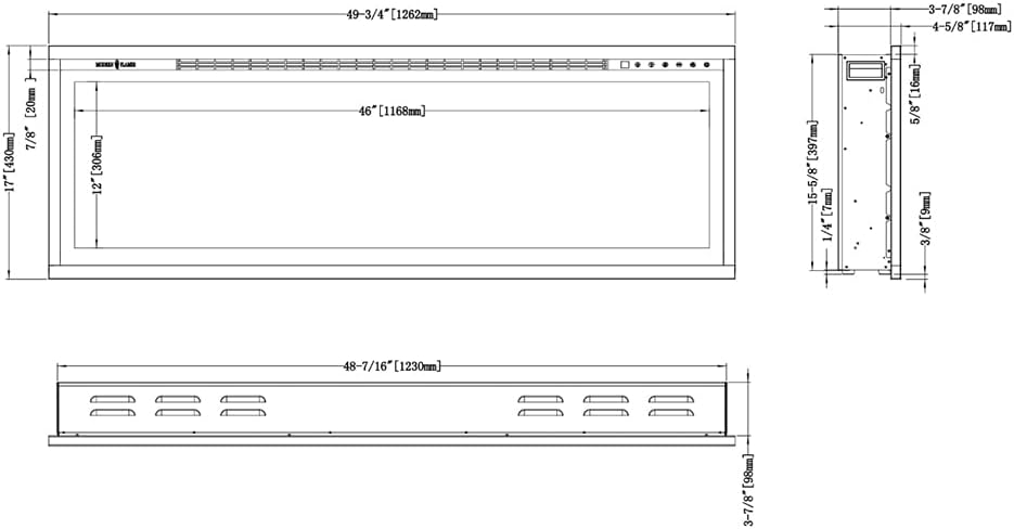 Modern Flames is known as the innovative leader in modern, contemporary electric fireplace design and technology for residential and commercial settings. The company pioneered the introduction of the contemporary linear electric fireplace throughout North America in 2008. The look has since become a very popular application for architects, designers, builders and homeowners because of the extremely realistic flame appearance paired with the ease of installation and overall cost compared to a gas or wood fireplace. 50" Spectrum Slimline Wall Mount Recessed 4" Deep - 50" X 12" Viewing