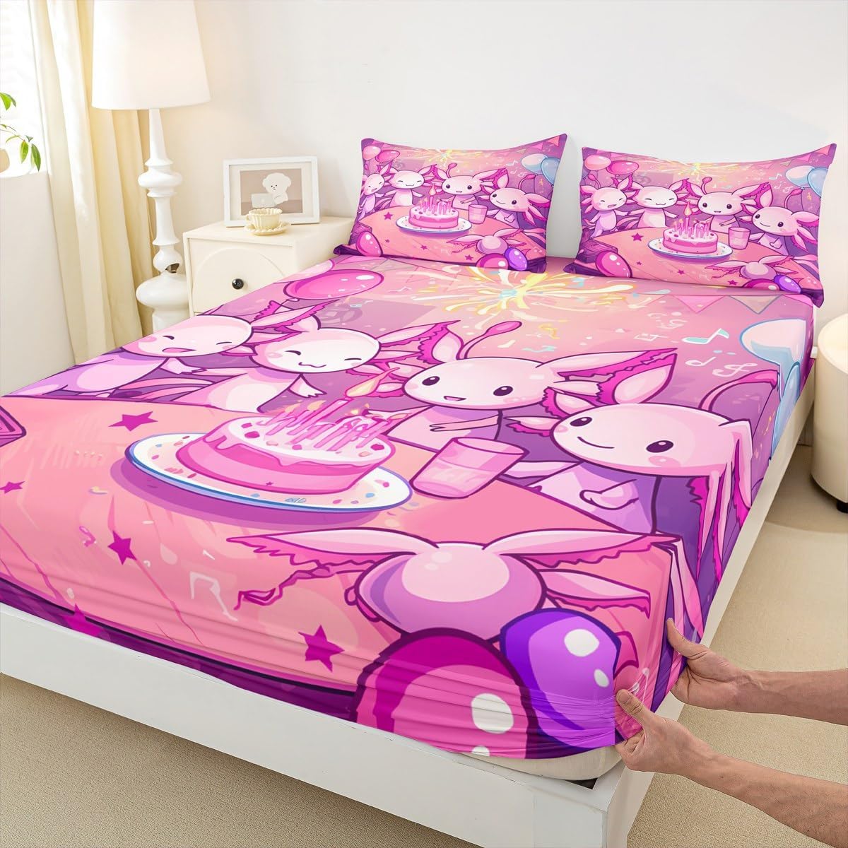I: Package Include 1 Fitted Sheet and 2 Pillowcases. The Modern Fitted Sheet Set Pattern Bedding Set,Simply Decorating Your Rooms Any Time You Want,Bringing You Fresh Feel for Year Round Use. Long Lasting Made From Polyester Microfiber II: Size Information Twin Size: 2Pcs Fitted Sheet Set:1 Fitted Sheet 39"Wx75"Lx16"H(99x190x41cm), 1 Pillowcase 20"x30"(51X75cm). Full Size: 3Pcs Fitted Sheet Set:1 Fitted Sheet 54"Wx75"Lx16"H(137x191x41cm), 2 Pillowcase 20"x30"(51x75cm). Queen Size: 3Pcs Fitted Sheet Set:1 Fitted Sheet 60"Wx80"Lx16"H(152x203x41cm), 2 Pillowcase 20"x30"(51x75cm). III: Personalize Your Bedroom Beautiful Design and Colorful Print,Makes Your Bedroom Unique and Brings You a Wonderful Dream. IV: Washing Instructions Machine Wash Separately In Cold Water,Hang Dry,Do Not Bleach. V: Occasion The Soft Fitted Sheet Bedding Sets Designed for Children,Adult,Men,Women,Teens. This Fitted Sheet Set Is Also Suitable for Full Seasons,Spring,Summer,Autumn and Winter. It Also Can Be Used As a present for Your Family and Friends.Such As Halloween,Moms and Dads,Valentine's,Mother's Day,Father's Day,Christmas. Will Be Love It:)