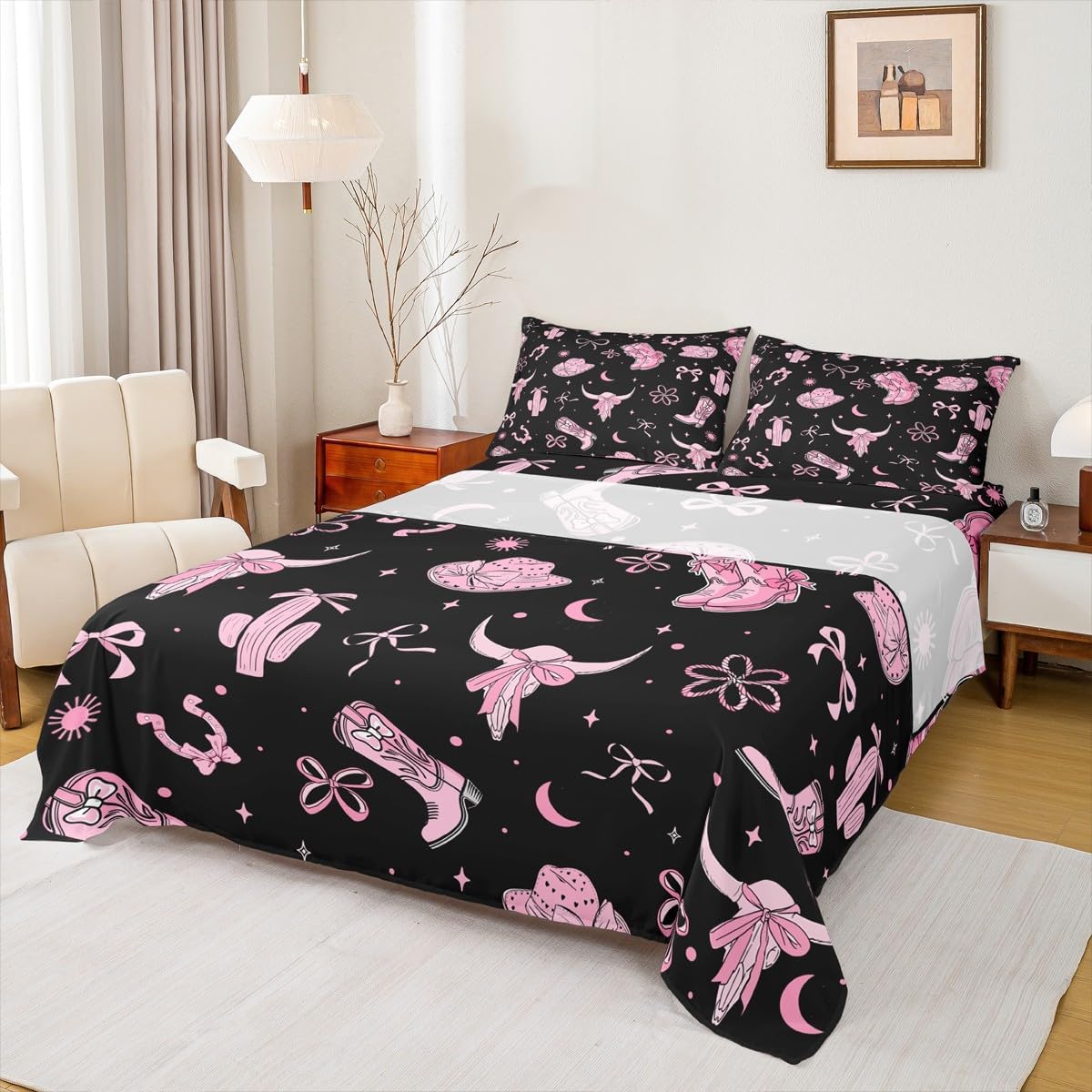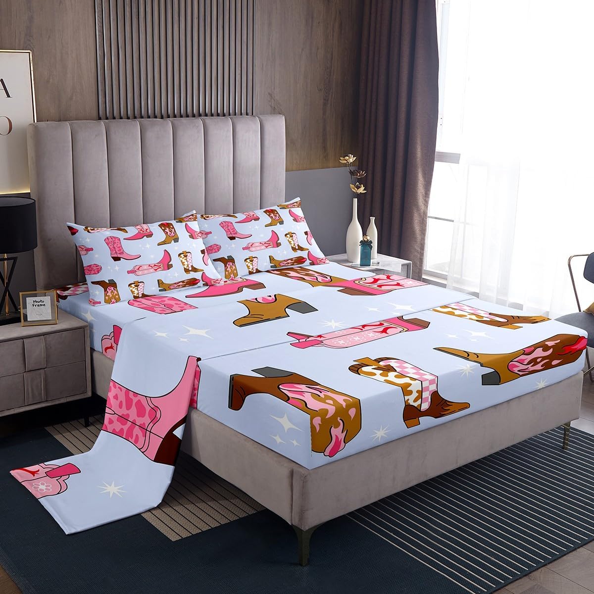 Our bed sheet is made of polyester fabric, lightweight and soft; stylish design is very suitable as room decoration for boys and girls; keep warm in winter and cool in summer; create a comfortable sleeping environment to make you fall asleep all night Range of size 1 twin fitted sheet 39 inch x 75 inch x 16 inch and 1 twin flat sheet 66 inch x 96 inch and 1 standard pillowcase 20 inch x 30 inch 1 full fitted sheet 54 inch x 75 inch x 16 inch and 1 full flat sheet 81 inch x 96 inch and 2 standard pillowcase 20 inch x 30 inch 1 queen fitted sheet 60 inch x 80 inch x 16 inch and 1 queen flat sheet 90 inch x 102 inch and 2 standard pillowcase 20 inch x 30 inch 1 king fitted sheet 78 inch x 80 inch x 16 inch and 1 king flat sheet 90 inch x 106 inch and 2 standard pillowcase 20 inch x 36 inch
