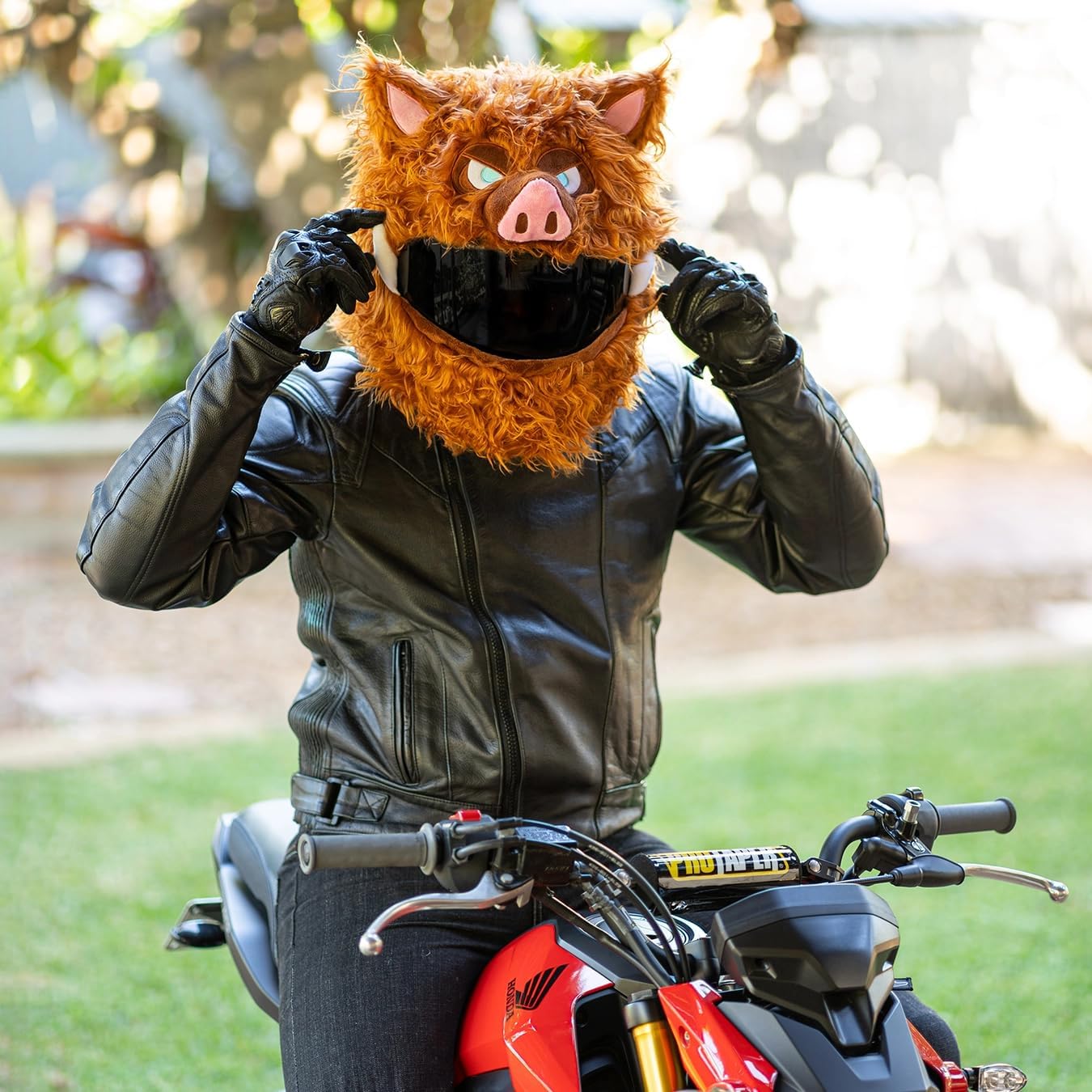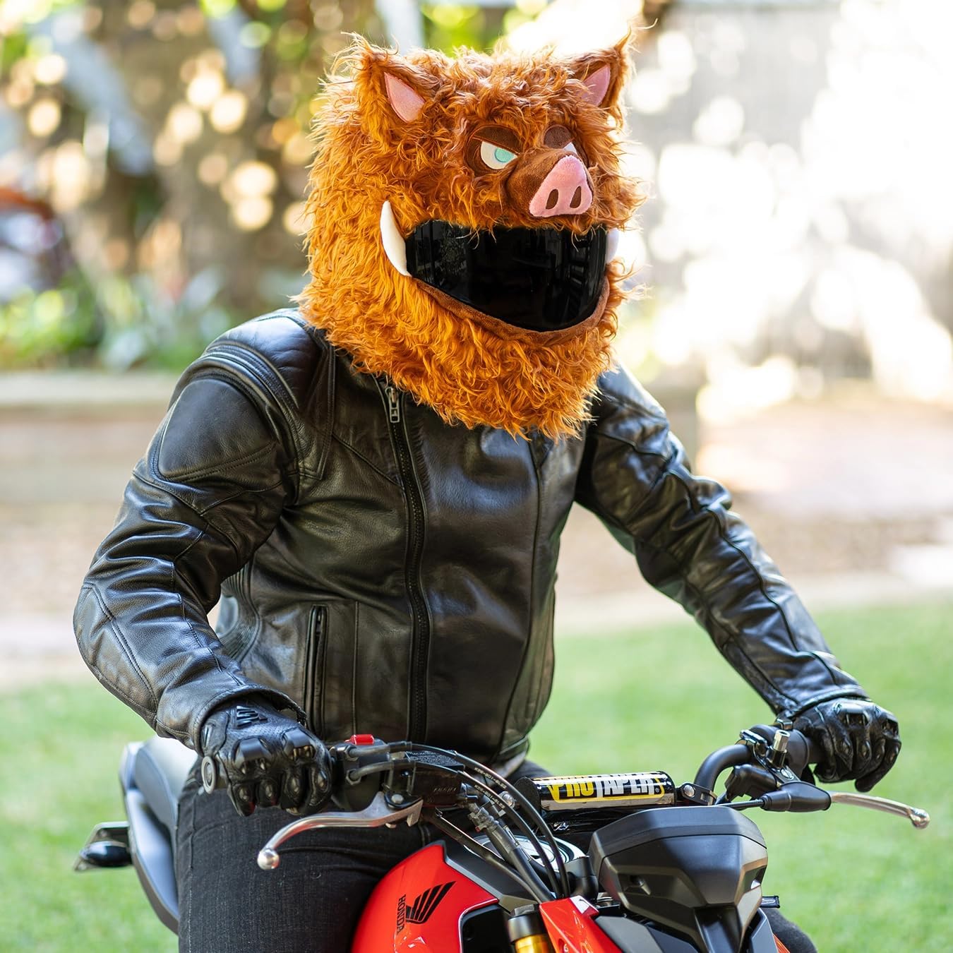 Why You Need This Helmet Cover?Brings Smiles To Faces Children will laugh, heads will turn and you'll make everyone a little happier when you rider past wearing this Wild Boar helmet cover. Everywhere you ride people will laugh, wave, give you thumbs up and take pictures. Don't be surprised if you find yourself staring on multiple social media pages after going for a ride wearing this fun helmet cover.Brightens Dull Commutes Let's be honest, we all have to do some rides that are a little less interesting (slow, high-traffic commutes come to mind). Chuck one of these removable helmet covers on before heading out and we promise it'll make any ride loads of fun!Helps Be Seen It's no secret drivers often don't see us when we're out on our motorcycles. With one of these Wild Boar helmet covers you'll stand out and have a much higher chance of being seen by others on the road. Fantastic benefit for any rider that doesn't like being hit by cars.One Size Fits All That's right, this helmet cover comes in just one size that fits almost all helmets. This means if you ever change helmets, you can use your helmet cover with your new one. It also means you can lend it to your friend and it should slip nicely onto their helmet.Easy To Install This crazy helmet cover is so easy to install even a monkey could do it (okay, we haven't tested this...if anyone knows a motorcycle riding monkey, please let us know). Simply slip it onto your helmet, adjust the cover so the mouth aligns with your visor and your vision is maximised, then pull it down tight.Keeps Helmet Clean This funny helmet cover will scare away dust so you'll never have to clean your bike/gear again! Alright, that's not entirely true but it will stop dust and from sticking to your beautiful helmet.