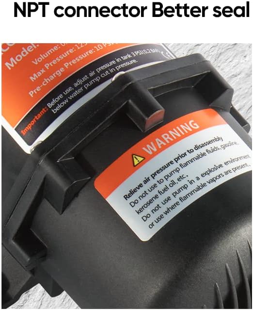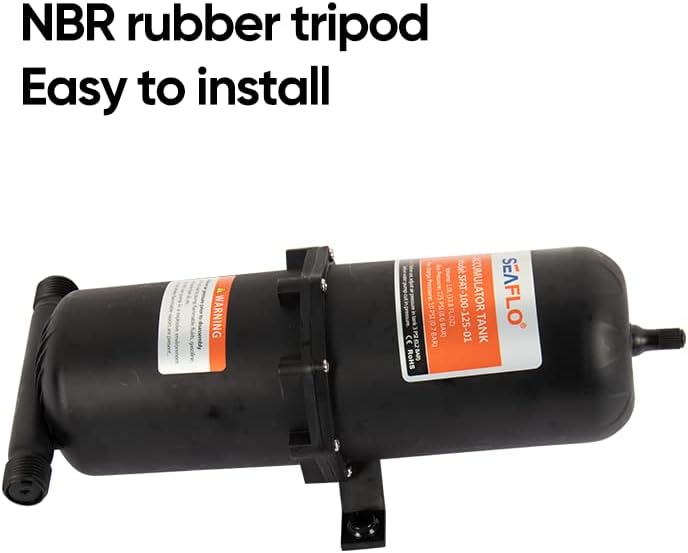 Product Details: The accumulator tank holds a reservoir of air and water down stream from the pump. The air acts as a cushion, absorbing pressure variations creating a smoother flow and reducing the cycling of the pump,especially at lower flows. Specifications Capacity:1.0 Liter VOLUME: 23.5 OZ INLET/ OUTLET: 1/2" Threaded NPT MAX PRESSURE: 125 PSI Easy connecting system Soft rubber mounts Applications: -Yacht/RV/caravan pressurized water system -Sprayer fixtures (vehicle-mounted and electric sprayer) -Clean machine, humidifier, water purification and medical apparatus -Food beverage filling and liquid transfer -Any other pressurization system Package Including: 1x Accumulator tank