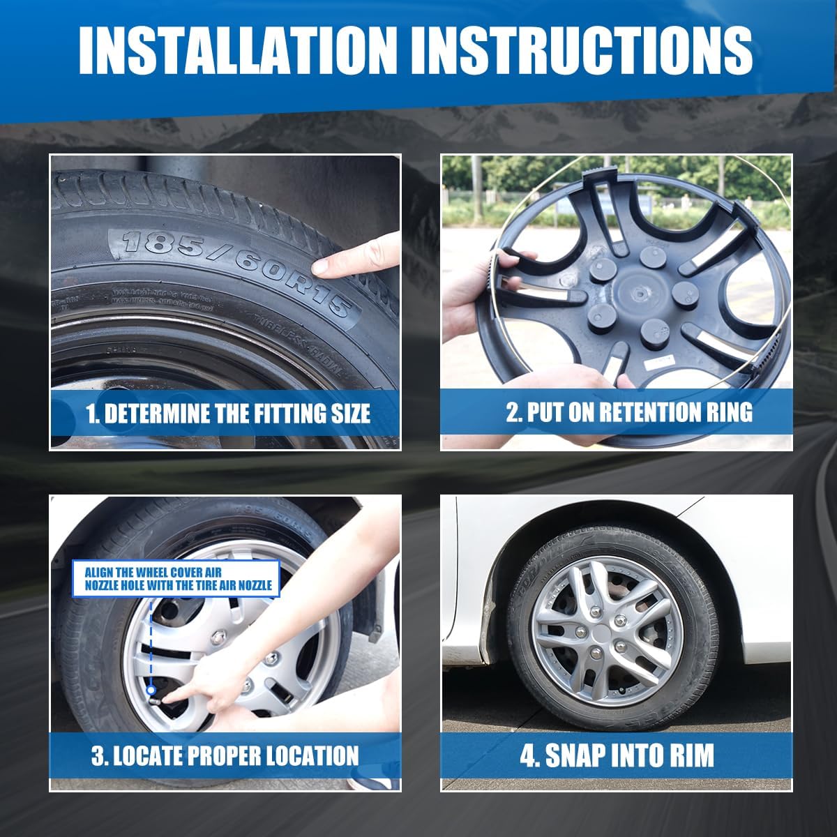 WOLFSTORM is a new Brand,selling product include Exterior accessory and specific vehicle new led tail lights assembly,some vehicle head light assembly.We are the manufacturer and also the direct seller.So we are in duty for selling ourselves product.Wheel Hubcaps Covers for Car/Truck/SUVNote: Please make sure your car in our match or please refer our pictures and dimensions.If you not make sure of the fitment of your car,please contact us customer service before you give the purchasePACKAGE INCLUDEInclude 4 wheel hubcaps in package,and carbon steel rings on hubcap cover back.INSTALLATION REFERENCEInstallation is not difficult, when you received this product package, please check the item have not broken in transportation. If it is broken, please send us a message and we will do a replacement or ship new set out.