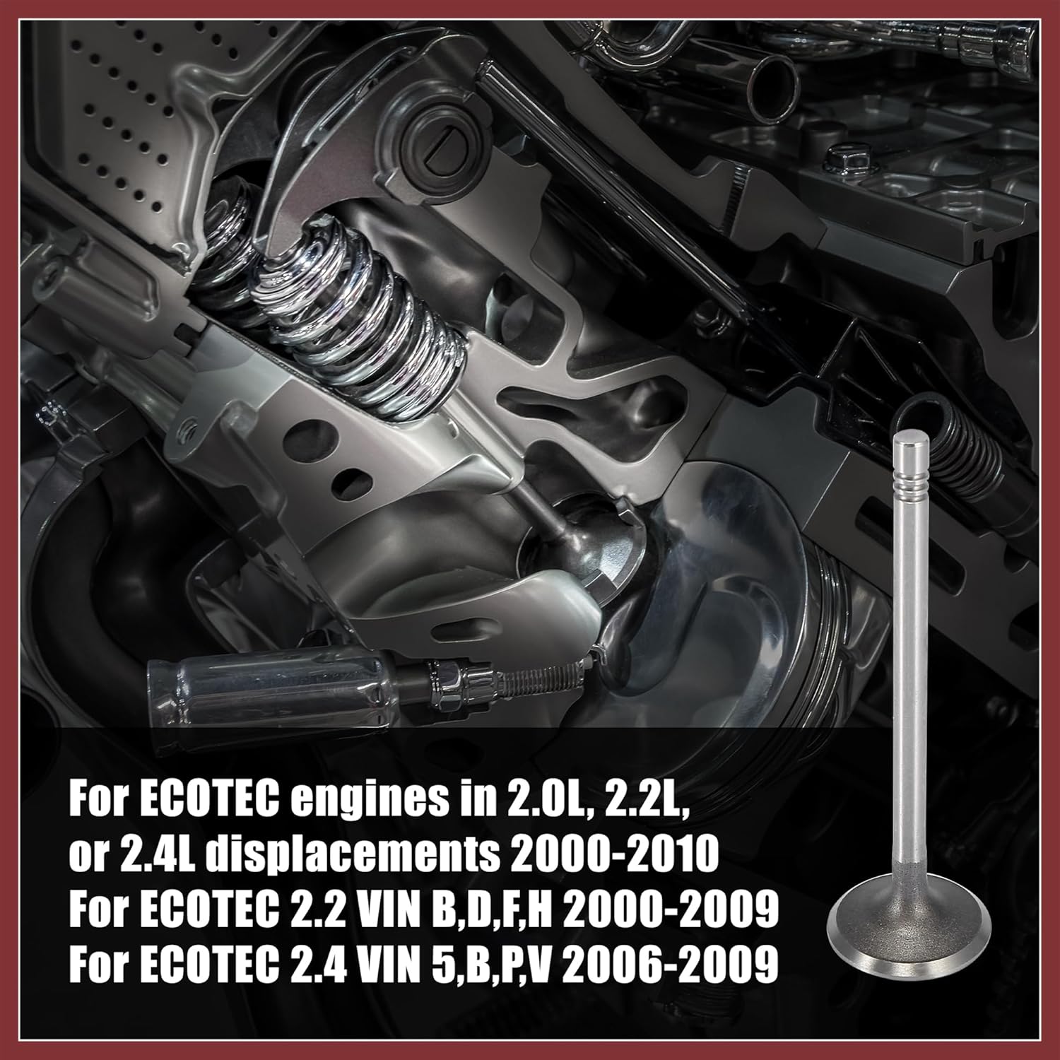 Features:Made of stainless steel, durability, long service life and anti-corrosion. Not easy to rust or peel.It is a good replacement for the old or broken one. Match for your one.The valve tool is used on the engine to control the working of engine.This is a non-OEM product, accessory only!Specification:Material: Stainless SteelColor: Black, Silver ToneIntake Valves Part Number: 12622329Exhaust Valves Part Number: 12615936Intake Tool Head Diameter: 35.1mm / 1.38"Intake Tool Stem Diameter: 6mm / 0.24"Intake Tool Length: 102mm / 4.02"Exhaust Tool Head Diameter: 30.1mm / 1.19"Exhaust Tool Stem Diameter: 6mm / 0.24"Exhaust Tool Length: 100mm / 3.94"Fitment:for GM Ecotec engines in 2.0L, 2.2L, or 2.4L displacements 2000-2010for GM Ecotec VIN B,D,F,H 2.2L 2000-2009for GM Ecotec VIN 5,B,P,V 2.4L 2006-2009for Oldsmobile Alerofor Chevrolet Cavalierfor Pontiac Grand Amfor Saturn L100 L200 L300 LS LS1 LW1 LW200for Pontiac Sunfire G5 G6for Chevrolet Cobaltfor Chevrolet HHRfor Chevrolet Malibufor Lexus Pursuitfor Saturn SkyInstallation Tips:Before installation, make sure your car car engine is cool. Then you can install the tool on the engine valve.Put the tool on the engine, hold the intake and exhaust tool tightly.After installation, the tools can work well on the intake and exhaust engine valve.Package Include:16 x Intake Exhaust Engine Valves