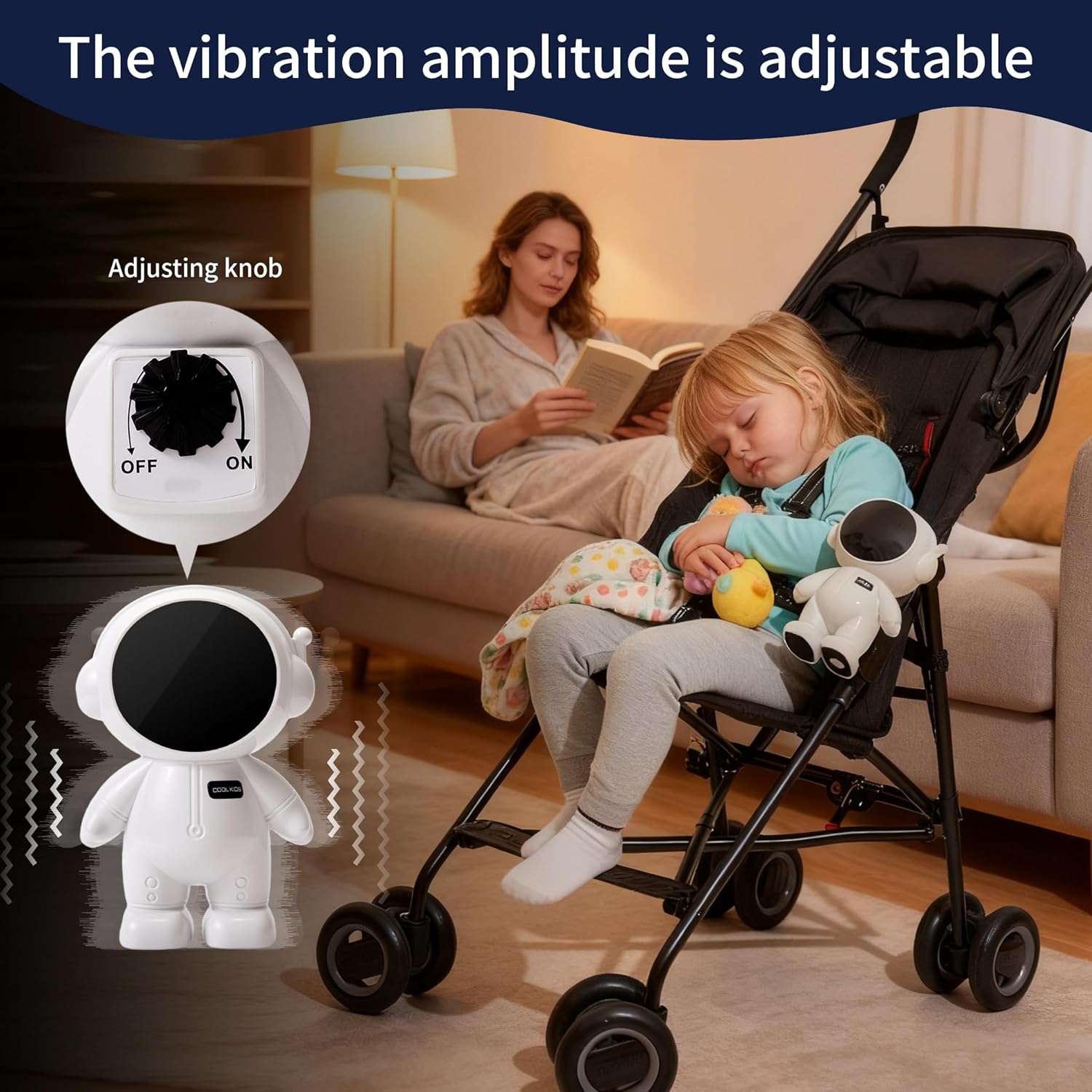 • Hands Free Rocker Easy to use: just connect the adapter to the stroller or cradle, and then turn the knob adjuster to use it. The product is designed to run in a silent mode of only 20 decibels, which will not disturb the baby's sleep and family's peace.