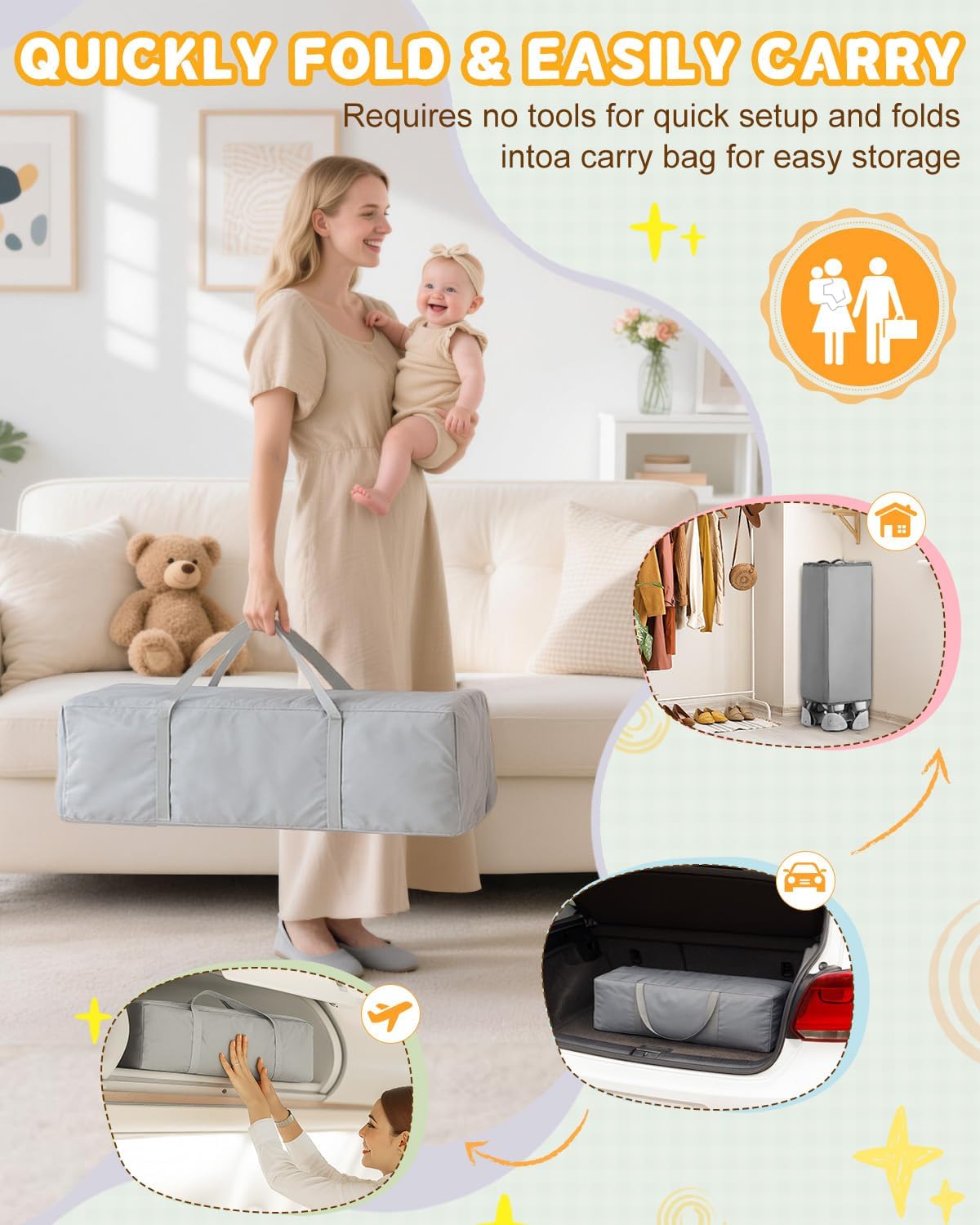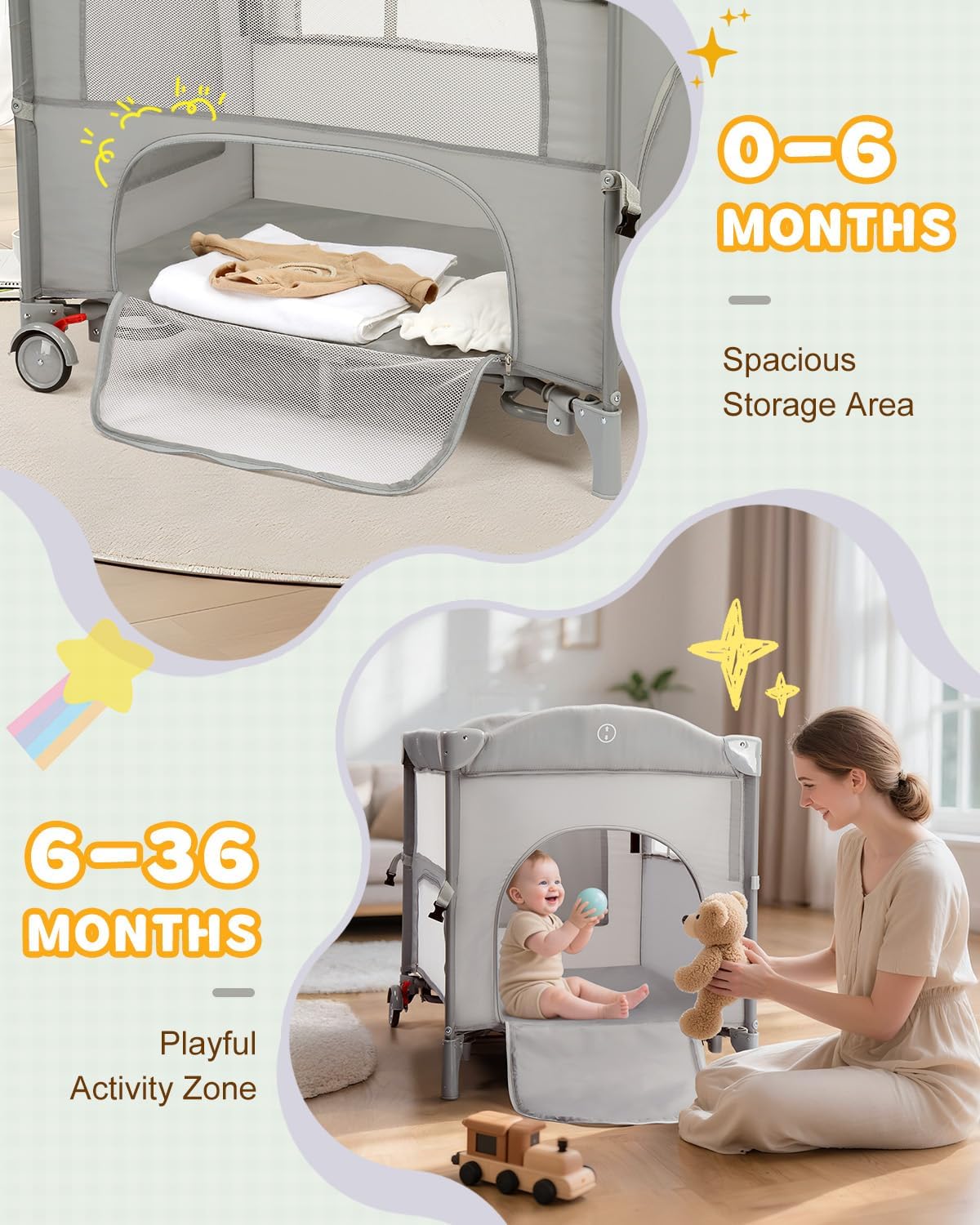 | Included Components | Mattress, rotating toys, travel bag |