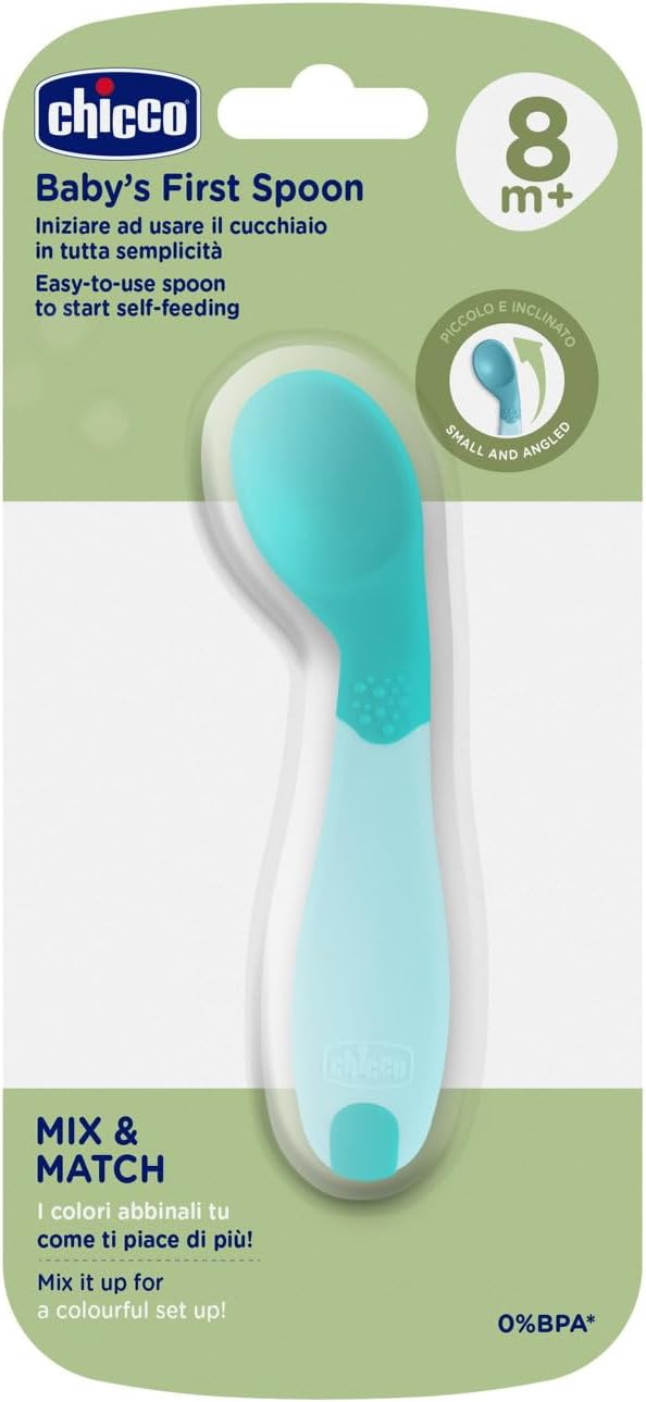 The first teaspoon of Chicco is designed for children to start eating independently. The ergonomic and angled shape of this spoon is designed to facilitate the baby's movements during meal. The teaspoon is ergonomic, small and light, and it is very easy to grip. Perfect for small hands and mouth. Plates, cutlery, mugs, bibs and much more...Everything you need to make meal easier.