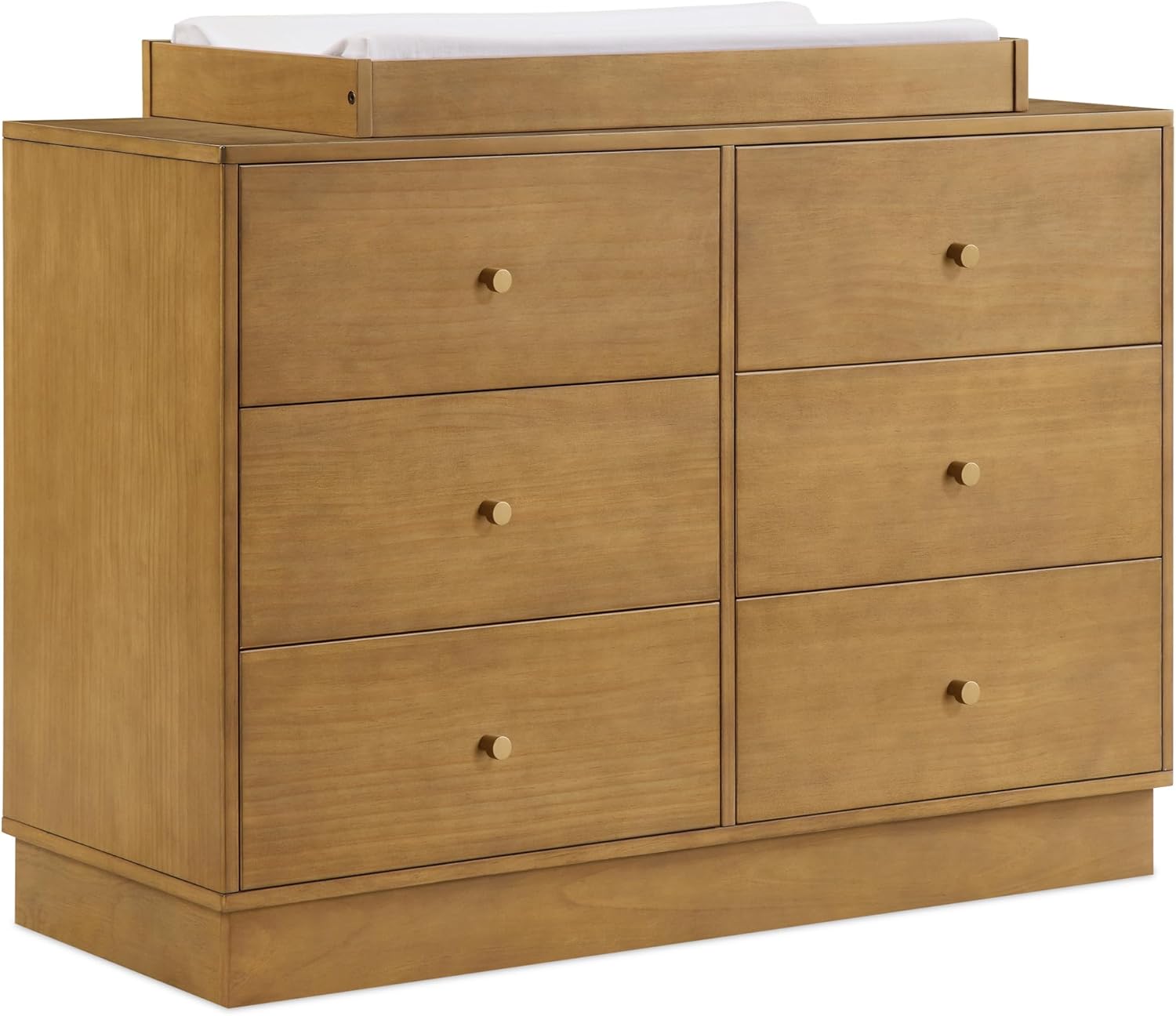 Simplify changing time with the Delta Children Changing Top (W100810). Easily transforming your dresser into a convenient changing table, it makes diaper duty doable with its secure and sturdy design. Best of all, when your child outgrows it, just remove it to reclaim the space on top of the dresser. Pair with the Rustic 3 Drawer Dresser or dresser with a top at least 33.75"W x 17.25"D.