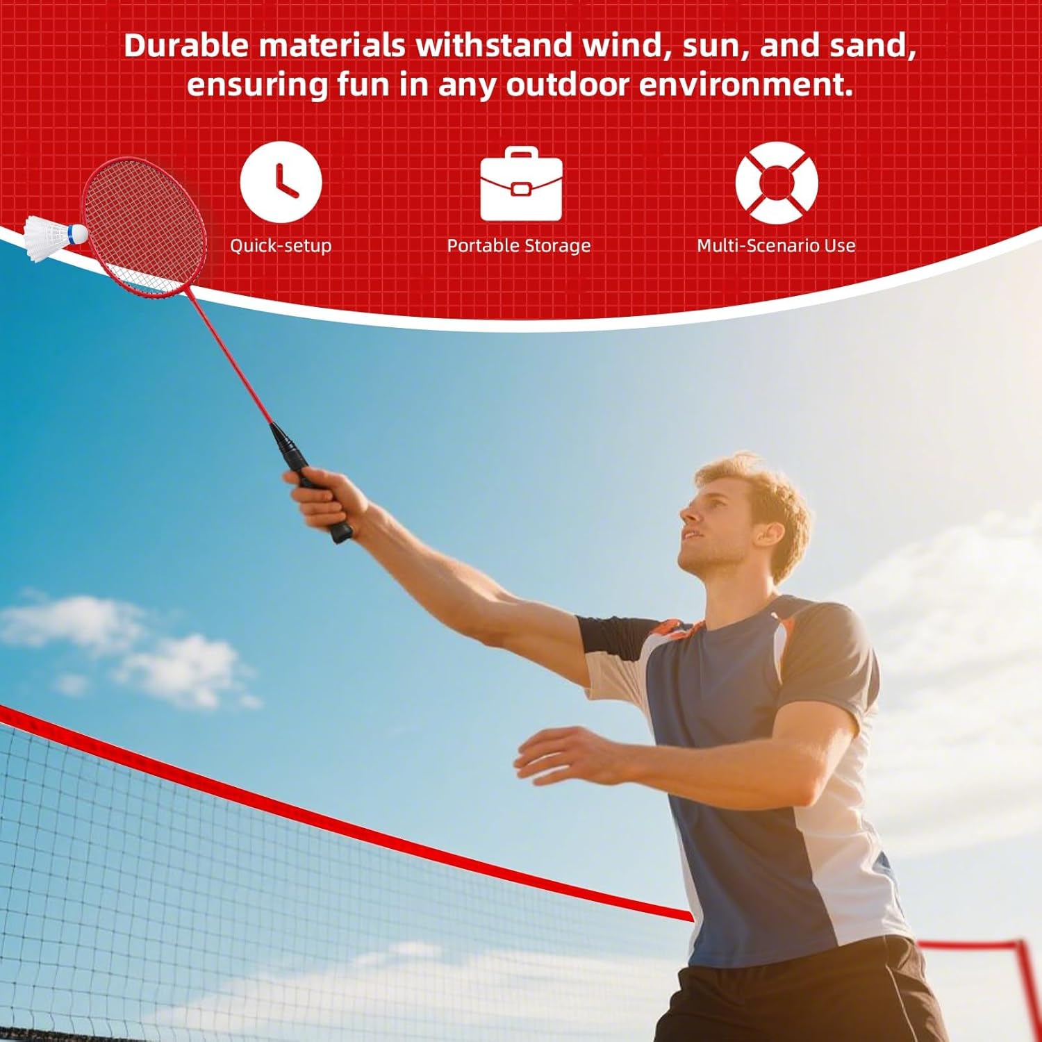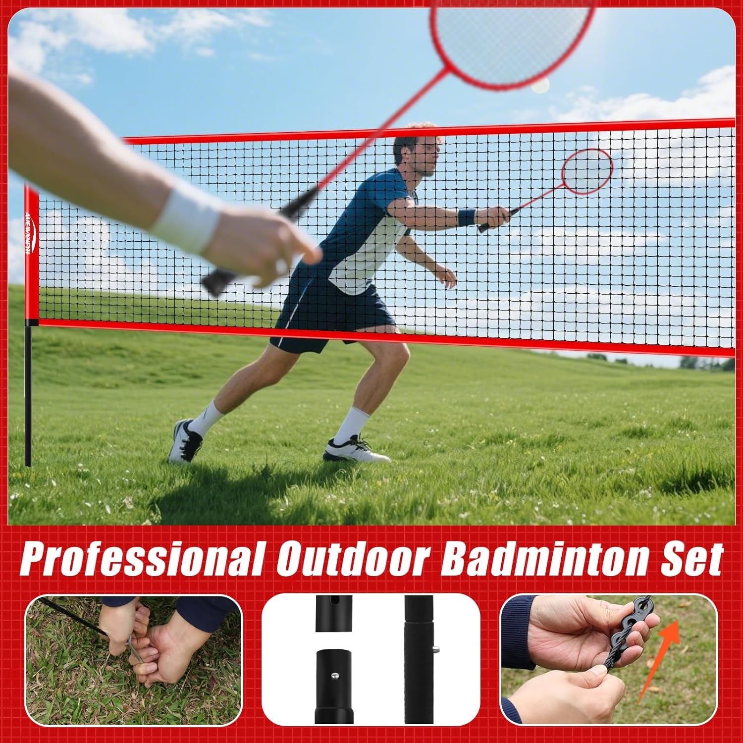 Elevate Your Game with the Ultimate Professional Badminton System. Upgrade your backyard experience with a BWF-compliant set built for performance. Our system features 1.26" heavy-duty aluminum poles and a stainless steel winch for professional net tension on any terrain—lawn, beach, or park. This versatile kit includes 4 pro-light carbon composite rackets (28lbs max tension) and a width-adjustable net (20ft/16ft/13ft) to fit any space. Designed for fast, 5-minute setup, it’s the rugged, all-weather solution for active families and competitive players alike. Dominating the court has never been this easy.